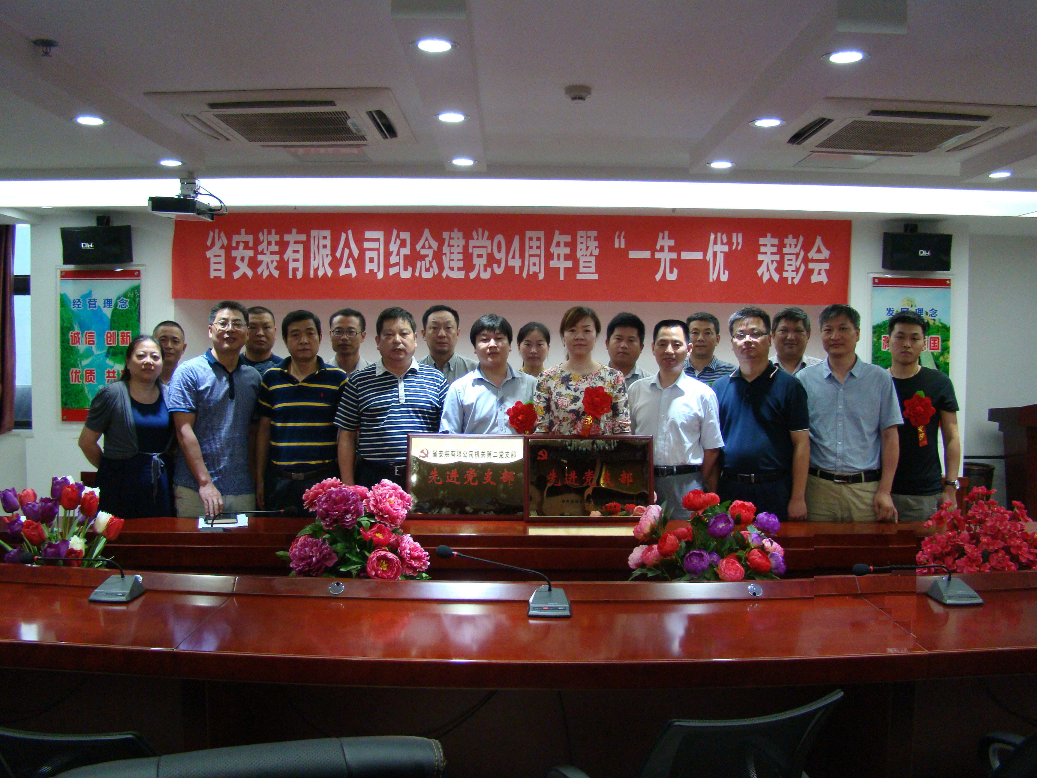 7月6日下午,公司隆重召開紀念建黨94周年暨“一先一優”表彰會。公司領導班子成員、在肥地區在崗黨員、外地分公司黨政主要負責人、各基層黨支部書記、受表彰的先進黨組織和優秀共產黨員代表參加了會議。