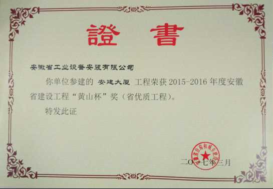 日前,2015-2016年度安徽省建設(shè)工程“黃山杯”(省優(yōu)質(zhì)工程)獲獎工程項目名單公布,公司參建的“安建大廈”通過形式審查、現(xiàn)場復(fù)查、評審委員會評審等程序,同獲該項殊榮。至此,公司榮獲“黃山杯”達11尊。同時“濱湖中心1-3#樓空調(diào)系統(tǒng)工程 ”還榮獲2017年度中國安裝工程優(yōu)質(zhì)獎(中國安裝之星)。