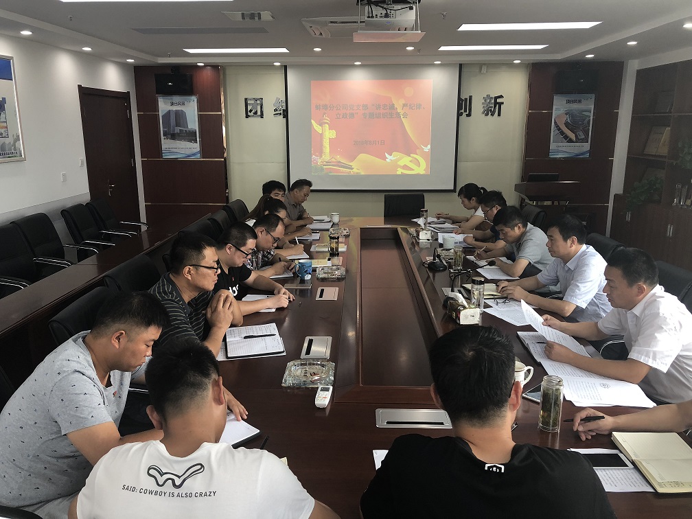 8月1日上午,蚌埠分公司黨支部召開“講忠誠、嚴紀律、立政德”警示教育專題組織生活會,分公司領導班子成員、支部全體黨員參加會議,會議由黨支部書記洪軍主持。公司副總經理劉安俊,紀委書記、工會主席李寬旭蒞臨指導。