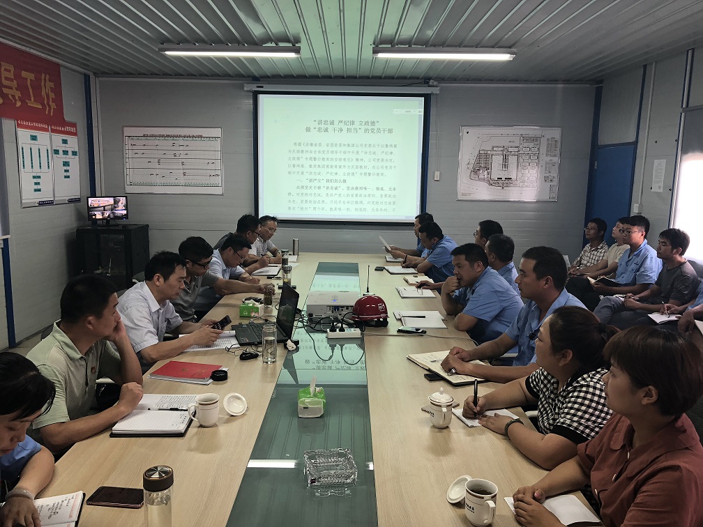 劉安俊指出:一是要牢記自己是國有企業員工,黨建和企業發展是密不可分的,黨的領導是國有企業重要的核心競爭力之一;二是項目黨建要緊緊圍繞生產經營來進行并把理論知識貫穿到實際工作和生活中,真正做到“內化于心、外化于行”;三是要牢記準則、嚴守紀律,對制度和紀律準則要存有敬畏之心,牢固樹立“四個意識”,增強責任心,提升工作作風,從而形成良好的工作氛圍;四是在人才培養上要充分發揮“傳幫帶”精神,鼓勵青年員工積極主動學習,并給他們提供一個能充分施展自我的廣闊平臺,幫助他們盡快成長起來。