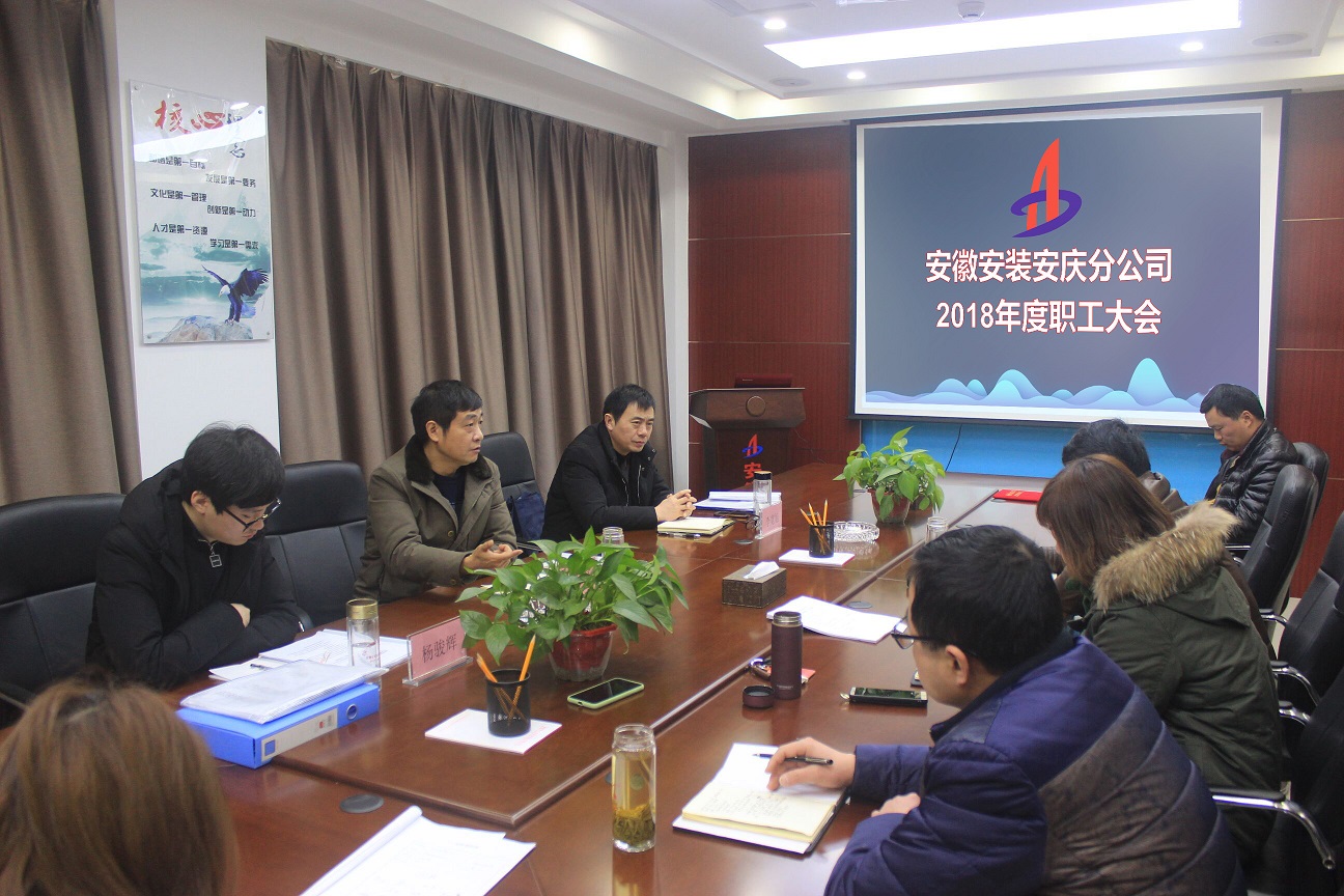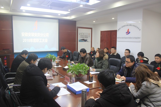 3月7日上午,安徽安裝公司安慶分公司召開2018年度職工大會,公司副總經理劉安俊,紀委書記、工會主席李寬旭應邀出席了大會。會議由安慶分公司黨支部書記劉紅艷主持。