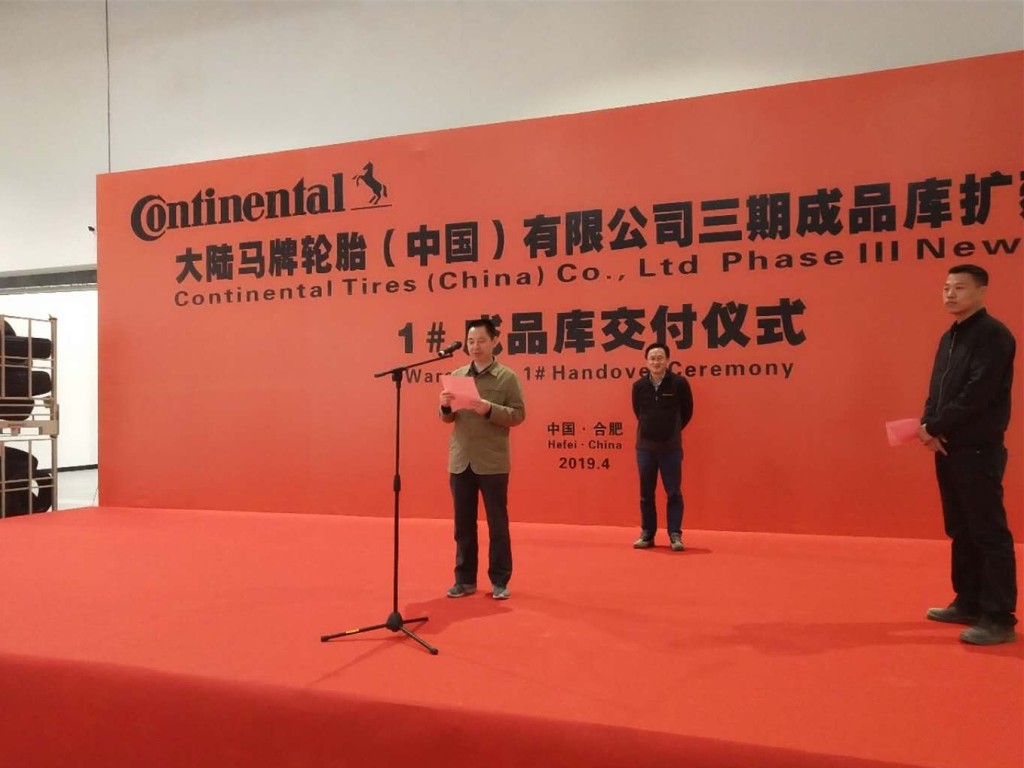2019年4月4日上午,由安徽省工業設備安裝有限公司承建的大陸馬牌輪胎三期成品庫擴建項目1#成品庫竣工暨交付儀式在1#成品庫內隆重舉行。安徽安裝公司黨委書記、董事長胡六中,大陸馬牌輪胎合肥工廠總經理王小驥,項目管理公司及監理公司等相關人員出席儀式。項目經理李冬主持交付儀式。
