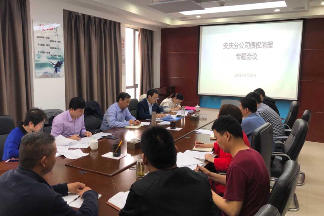 2019年4月23日,公司副總經理高飛在財務部經理許素寒、紀檢監察室主任王偉、工程管理部副經理龍海建等人的陪同下蒞臨安慶分公司,召開債權清理專題會議。