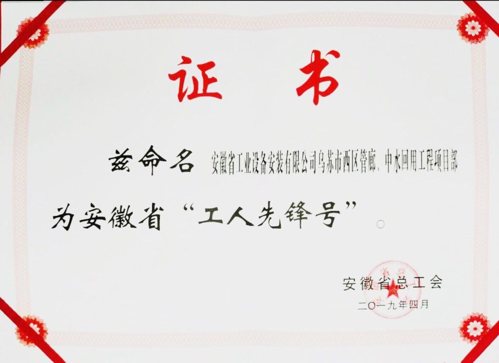 勞動(dòng)托起中國(guó)夢(mèng),奮斗建功新時(shí)代。4月29日上午,“安徽省慶祝‘五一’暨勞動(dòng)和技能競(jìng)賽先進(jìn)集體先進(jìn)個(gè)人表彰大會(huì)”在安徽大劇院隆重舉行。會(huì)上,安徽安裝公司新疆烏蘇管廊、中水項(xiàng)目部被授予安徽省“工人先鋒號(hào)”稱(chēng)號(hào),這是公司首次獲得該項(xiàng)殊榮。