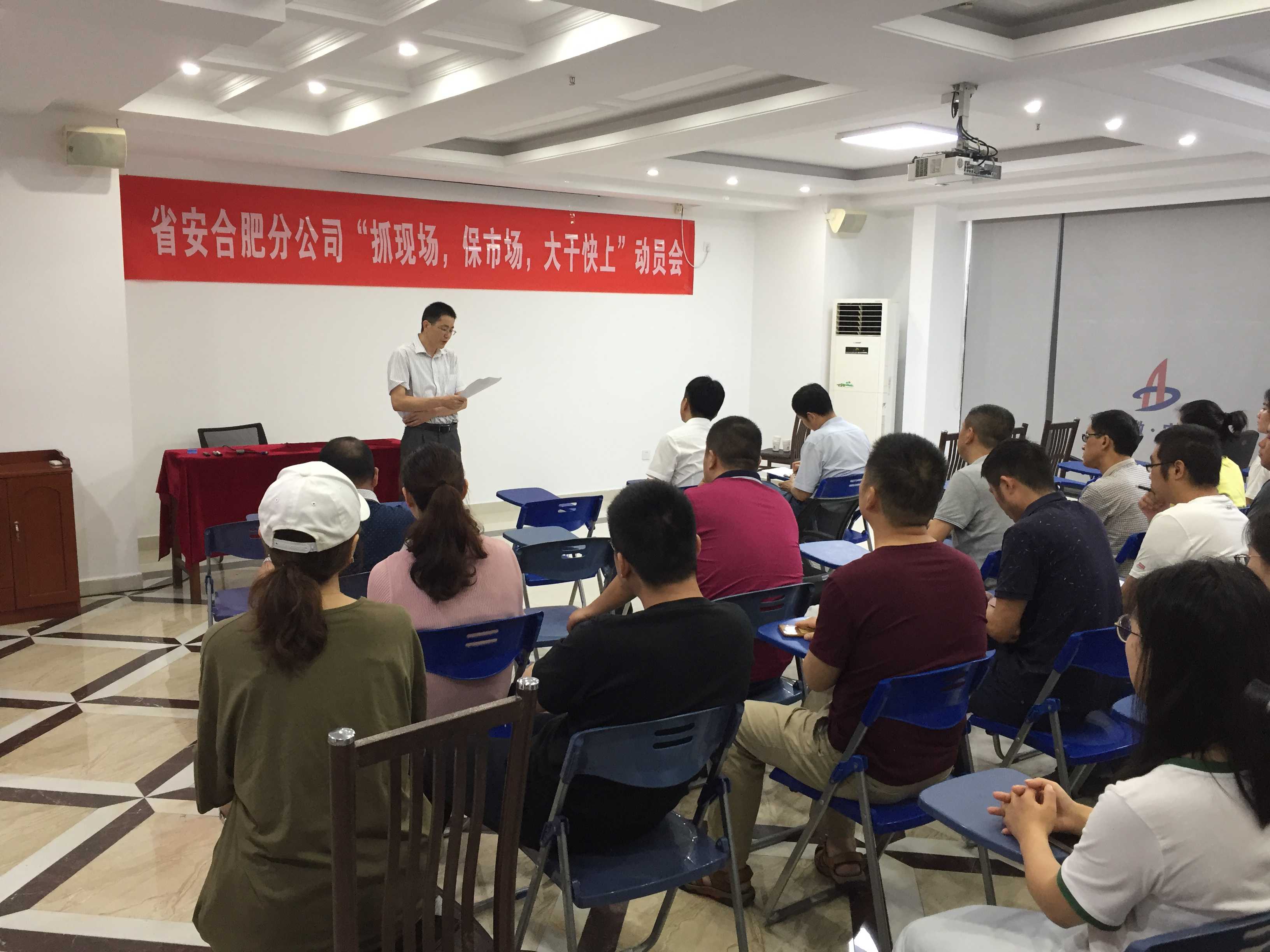 合肥分公司積極響應公司的號召,2019年6月19日上午,分公司組織機關全體人員和合肥地區項目經理及項目管理人員共計30余人在公司15樓職工之家召開了“抓現場、保市場、大干快上”動員會。