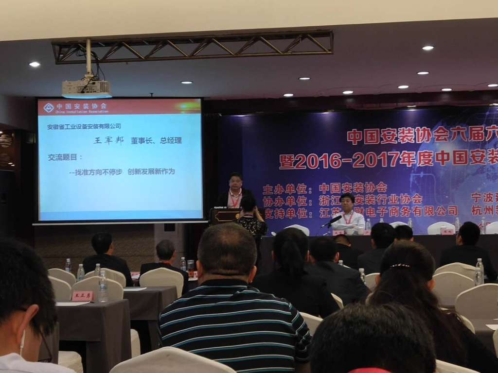 2018年4月24日,安徽省安裝和機(jī)械設(shè)備協(xié)會(huì)參加中國安裝協(xié)會(huì)在寧波召開的六屆六次理事(擴(kuò)大)會(huì)議暨2016-2017年度中國安裝協(xié)會(huì)科學(xué)技術(shù)進(jìn)步獎(jiǎng)?lì)C獎(jiǎng)大會(huì)。各省、自治區(qū)、直轄市安裝協(xié)會(huì)(分會(huì))、會(huì)員單位地區(qū)聯(lián)絡(luò)組負(fù)責(zé)人,協(xié)會(huì)理事與科技進(jìn)步獎(jiǎng)獲獎(jiǎng)單位代表等近300人參加會(huì)議。我會(huì)會(huì)長王軍邦攜副會(huì)長李鵬飛、秘書長杜慶梅及部分會(huì)員單位代表分別參會(huì)。