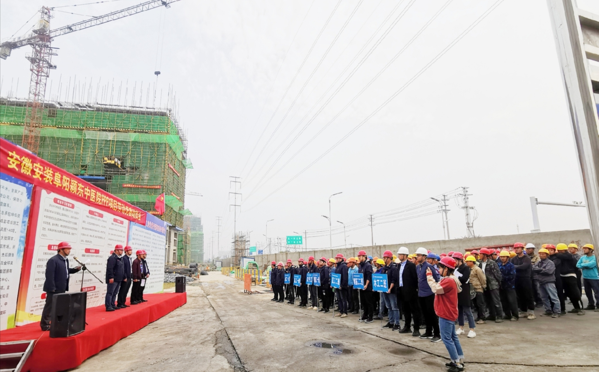為確保年度各項(xiàng)目目標(biāo)任務(wù)順利完成,貫徹落實(shí)集團(tuán)公司開(kāi)展“搶進(jìn)度、保工期、穩(wěn)預(yù)期、促提升”為主題勞動(dòng)競(jìng)賽活動(dòng)精神,2019年10月11日上午,安徽安裝召開(kāi)阜陽(yáng)潁東區(qū)中醫(yī)院PPP項(xiàng)目“大干四季度”勞動(dòng)競(jìng)賽動(dòng)員大會(huì)。公司副總經(jīng)理高飛,紀(jì)委書(shū)記、工會(huì)主席李寬旭,總工程師吳繼成,公司相關(guān)部門(mén)負(fù)責(zé)人、項(xiàng)目管理人員和施工班組共120多人參加了競(jìng)賽動(dòng)員會(huì)。