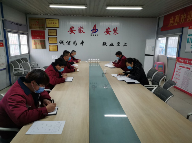 支部分別通過(guò)黨員視頻會(huì)、項(xiàng)目例會(huì)、團(tuán)支部會(huì)議等多種形式學(xué)習(xí)宣貫安徽建工控股一屆七次職代會(huì)精神、安徽安裝第十六屆七次職代會(huì)精神、《安徽建工集團(tuán)控股有限公司疫情防控期間復(fù)工管理方案》及《安徽安裝公司關(guān)于切實(shí)做好復(fù)工復(fù)產(chǎn)前疫情防控工作的通知》等疫情防控相關(guān)文件精神。與此同時(shí),為營(yíng)造濃厚的學(xué)習(xí)氛圍,還在項(xiàng)目現(xiàn)場(chǎng)制作張貼宣傳展板,并把學(xué)習(xí)資料上傳到分公司QQ工作群,把職代會(huì)精神和疫情防控文件宣傳至項(xiàng)目一線。