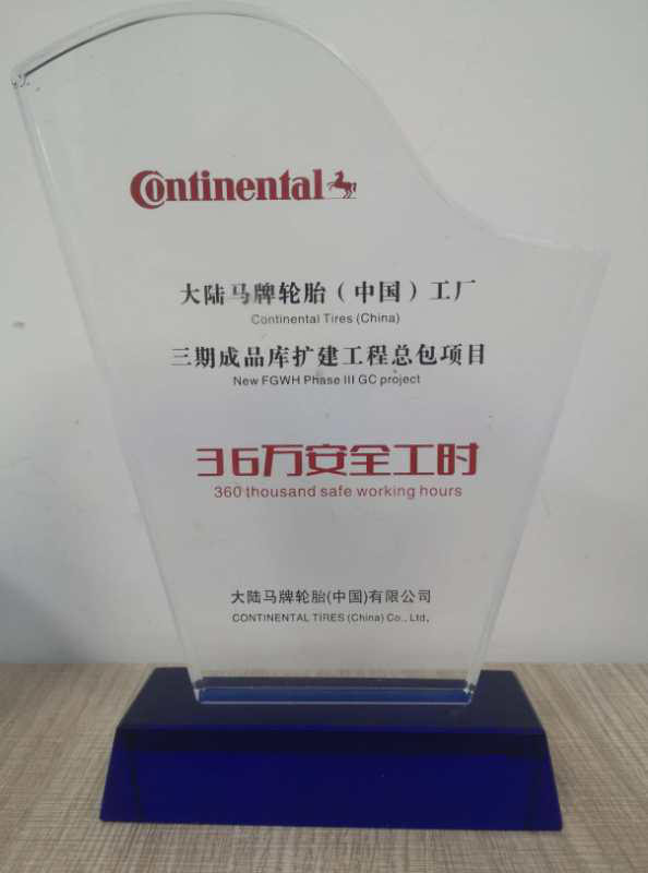 近日,大陸馬牌輪胎(中國(guó))有限公司授予安徽安裝公司“優(yōu)質(zhì)承包商”獎(jiǎng)牌和“36萬(wàn)安全工時(shí)”獎(jiǎng)杯。