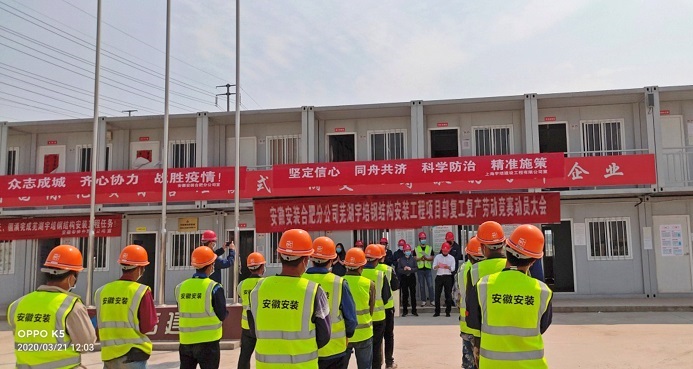 為確保年度各項目目標(biāo)任務(wù)順利完成,貫徹落實集團和安裝公司兩級職代會及疫情防控、復(fù)工復(fù)產(chǎn)工作推進會精神,3月21日上午,安徽安裝召開蕪湖宇培裝配生產(chǎn)基地項目“大干90天”勞動競賽動員會。公司黨委書記、董事長胡六中,紀(jì)委書記、工會主席李寬旭,合肥分公司領(lǐng)導(dǎo)班子成員、項目管理人員和施工班組參加了競賽動員會。