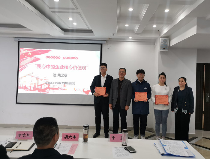 10月30日下午,安徽安裝公司在公司15樓職工之家舉辦了“我心中的企業核心價值觀”演講比賽。公司黨委書記、董事長胡六中,紀委書記、工會主席李寬旭,副總經理李原、總會計師張元斌出席比賽現場。