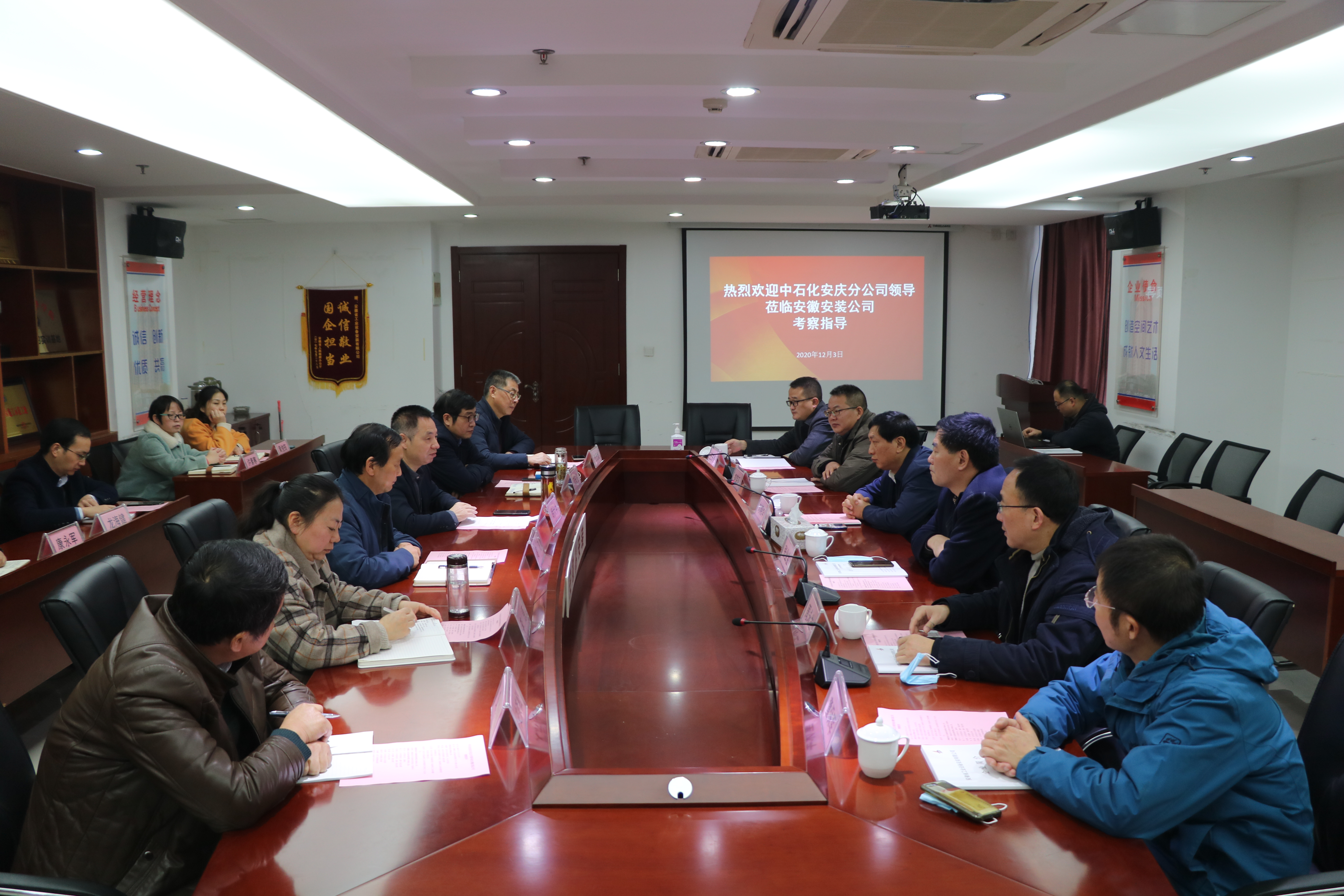 12月3日,中國石化安慶石化公司黨委書記、分公司代表劉曉華,中國石化安慶石化公司副總經理張業金,安徽盈創石化檢修安裝有限公司董事長胡榮昭一行赴安徽安裝公司考察指導,并召開座談會。安徽安裝公司黨委書記、董事長胡六中主持會議。