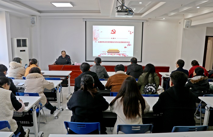 課上,江輝結合自身多年黨務知識,從“處理好機關黨支部建設與機關全面建設的關系”“處理好機關黨支部領導與機關行政領導的關系”“處理好機關黨務工作與業務工作的關系”三個方面深刻闡述了作為機關黨支部應如何積極發揮作用。他指出,機關黨支部要充分認清支部在機關全面建設中的重要地位和作用,機關黨員干部要不斷增強凝聚力和戰斗力,同時要注意理清機關黨支部領導與機關行政領導的區別與不同,要善于抓大事,善于處理好機關黨務工作與機關業務工作的關系,找準黨務工作與業務工作的切入點,加強機關黨支部建設,持續推動各項黨建工作任務落實落地,以黨建工作新成效促進安徽安裝公司高質量發展。