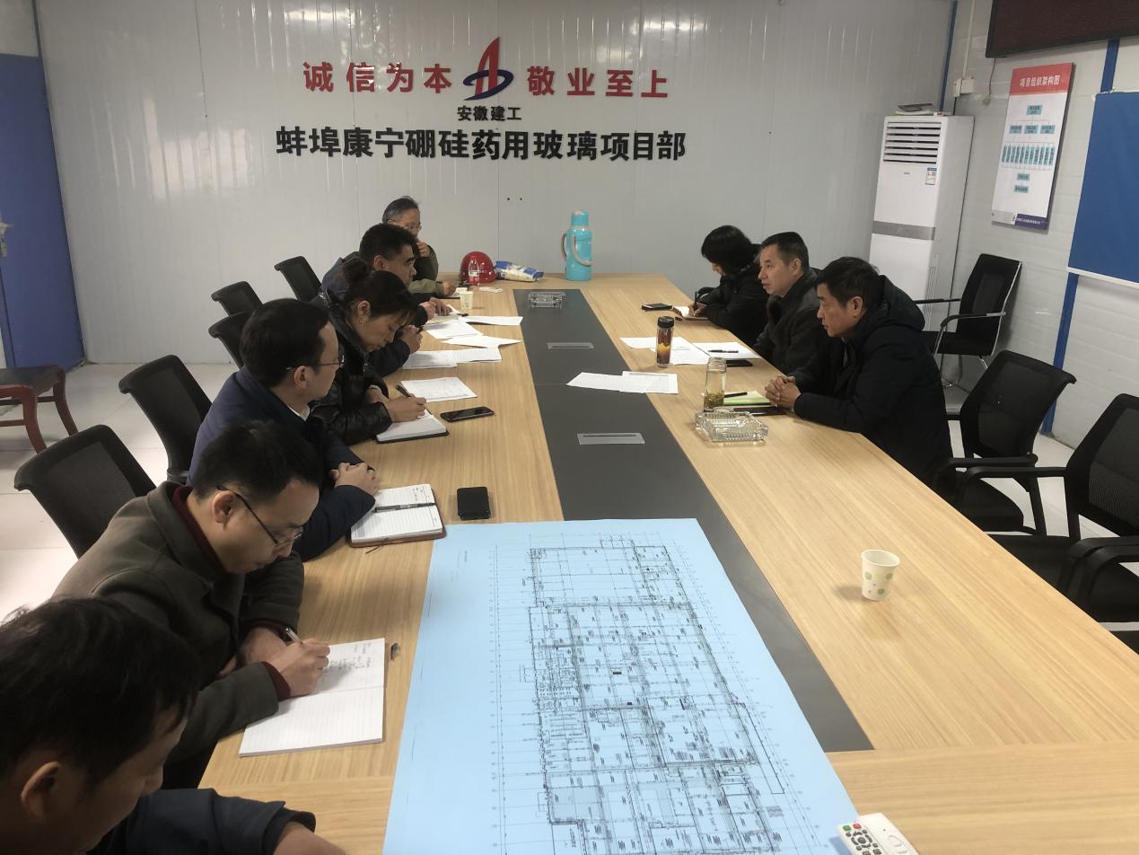 12月25日,公司黨委書記、董事長胡六中赴康寧硼硅藥用玻璃項目調研指導工作,公司副總經理、現場施工管理指揮部副指揮長劉安?。ǔ眨┘叭肆Y源部經理王敏、項目部各負責人參加調研會議。