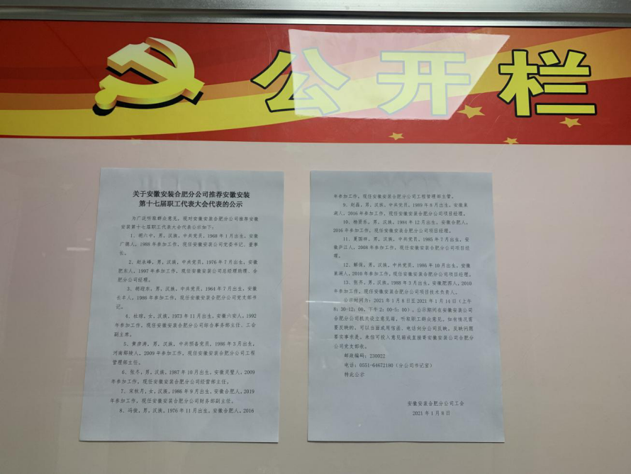 近日,安徽安裝公司工會組織開展公司第十七屆職工代表大會職工代表換屆選舉工作。