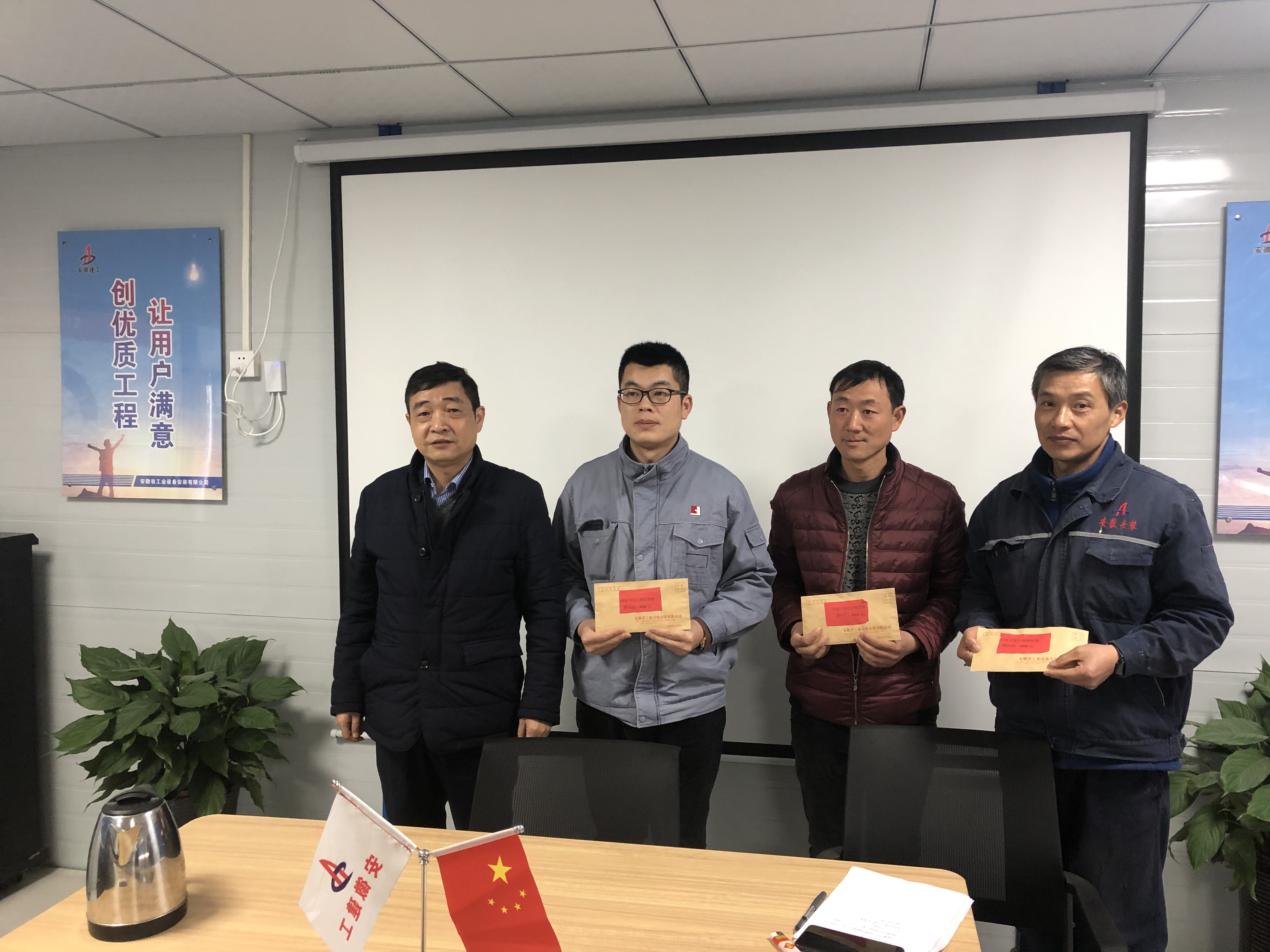 2月14日—15日,公司副總經理高飛、劉安俊分別先后來到蚌埠康寧項目和蚌埠臨港項目施工現場,親切慰問節日期間奮戰在一線的項目員工,并與員工親切握手交談,細心詢問員工的工作及生活情況,為他們送來了新春紅包和節日的祝福。蚌埠分公司經理趙銘亮、支部書記程茂麗參加慰問。