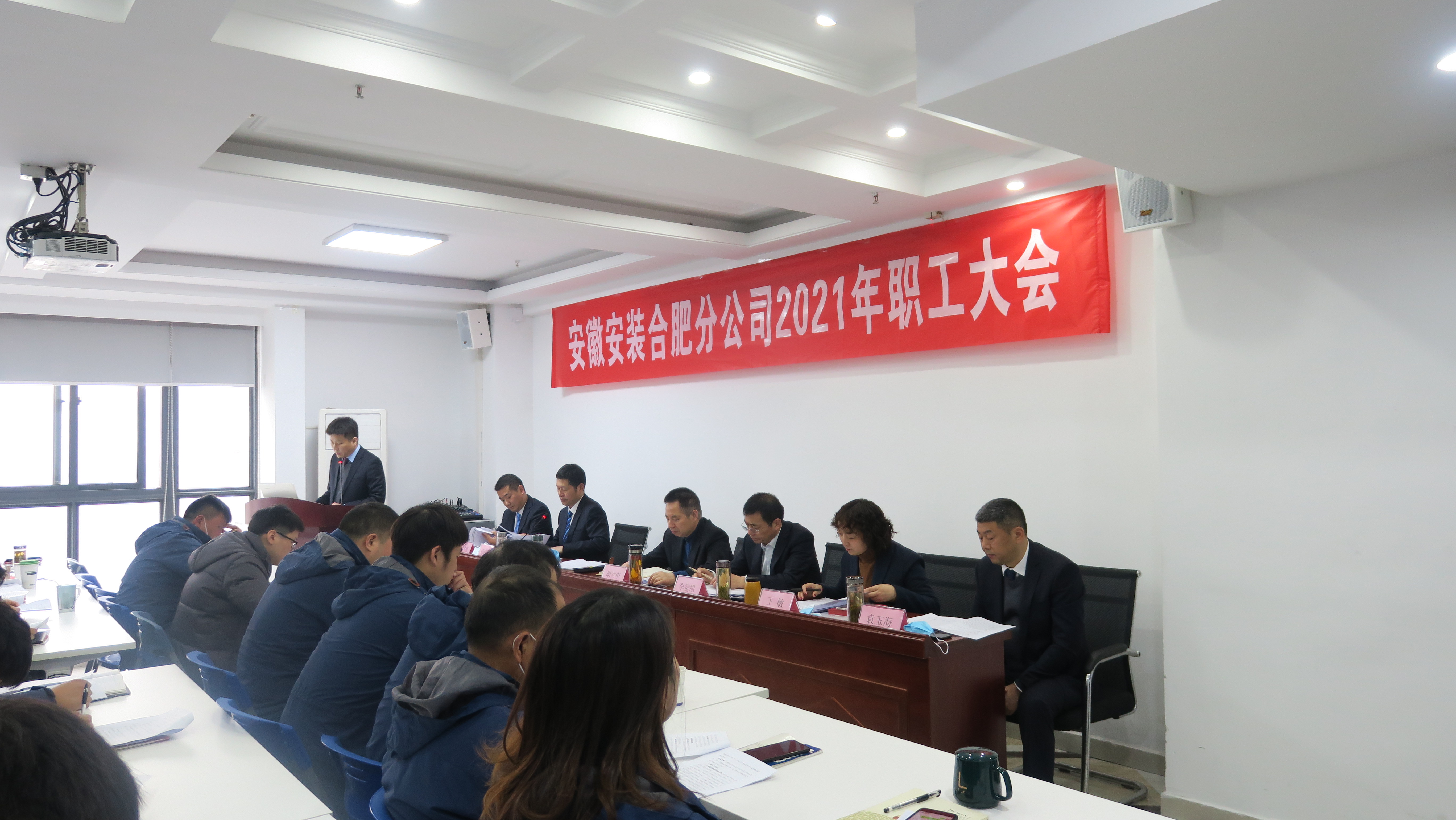 3月5日上午,安徽安裝合肥分公司在公司十五樓召開2021年職工大會。公司黨委書記、董事長胡六中,紀委書記、工會主席李寬旭出席大會,人力資源部及黨委辦公室負責同志、分公司班子成員及機關、各項目部員工參加會議。會議由分公司黨支部書記胡迎東主持。