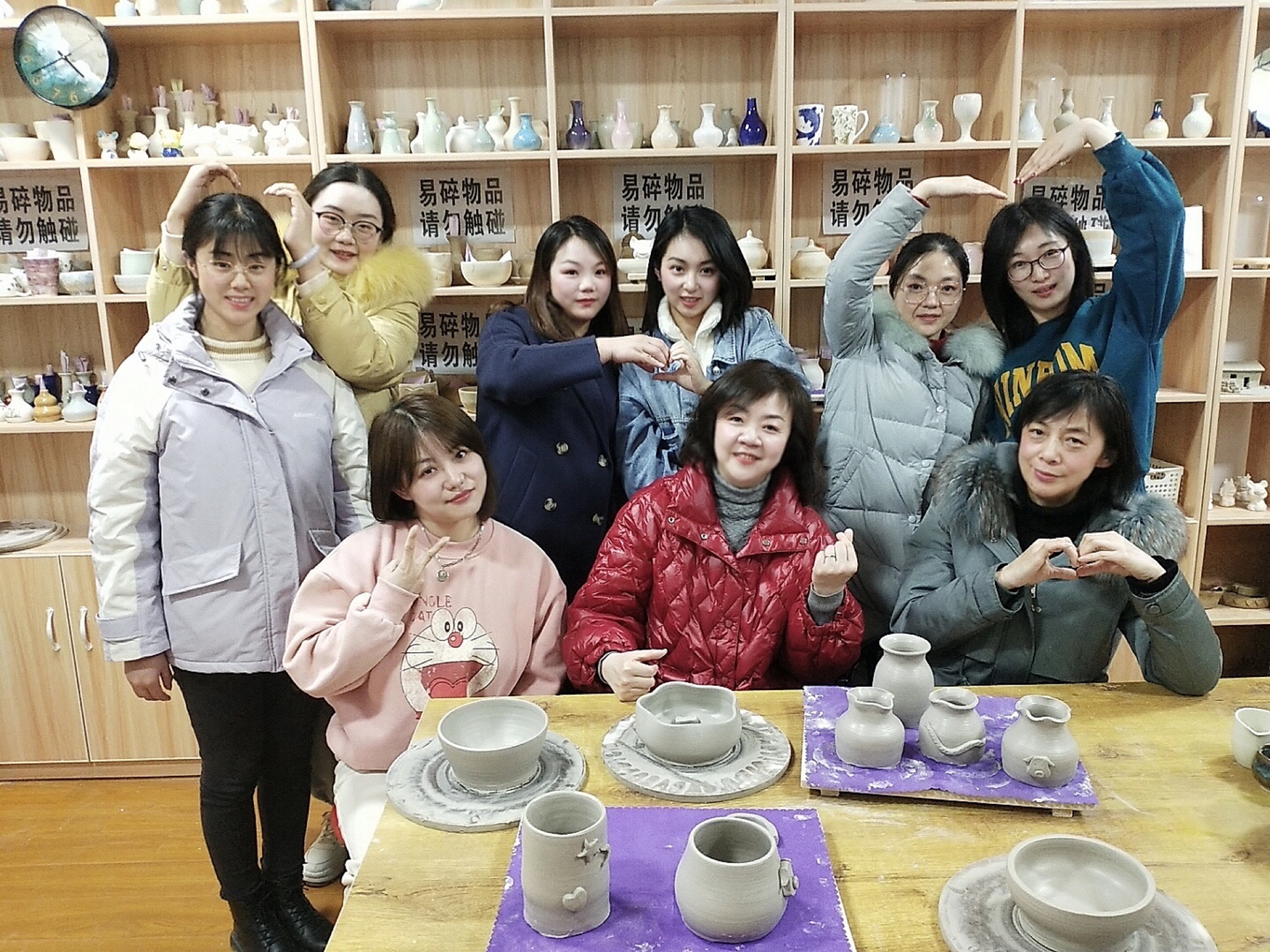 在拍攝創(chuàng)意照片活動中,女職工們身穿工作服,手拿慶祝節(jié)日圖片,展現(xiàn)女職工風(fēng)采。同時,以手臂為造型,共同組成心型圖案,寓意同心啟程“十四五”,為公司發(fā)展助力。在之后開展的手工陶藝活動中,女職工們在陶藝制作師的指導(dǎo)下,利用轉(zhuǎn)動的輪盤,動手將瓷土拉制成各種形狀的拉胚,并對陶藝進(jìn)行塑型雕花,制作出一件件精美的陶藝作品。