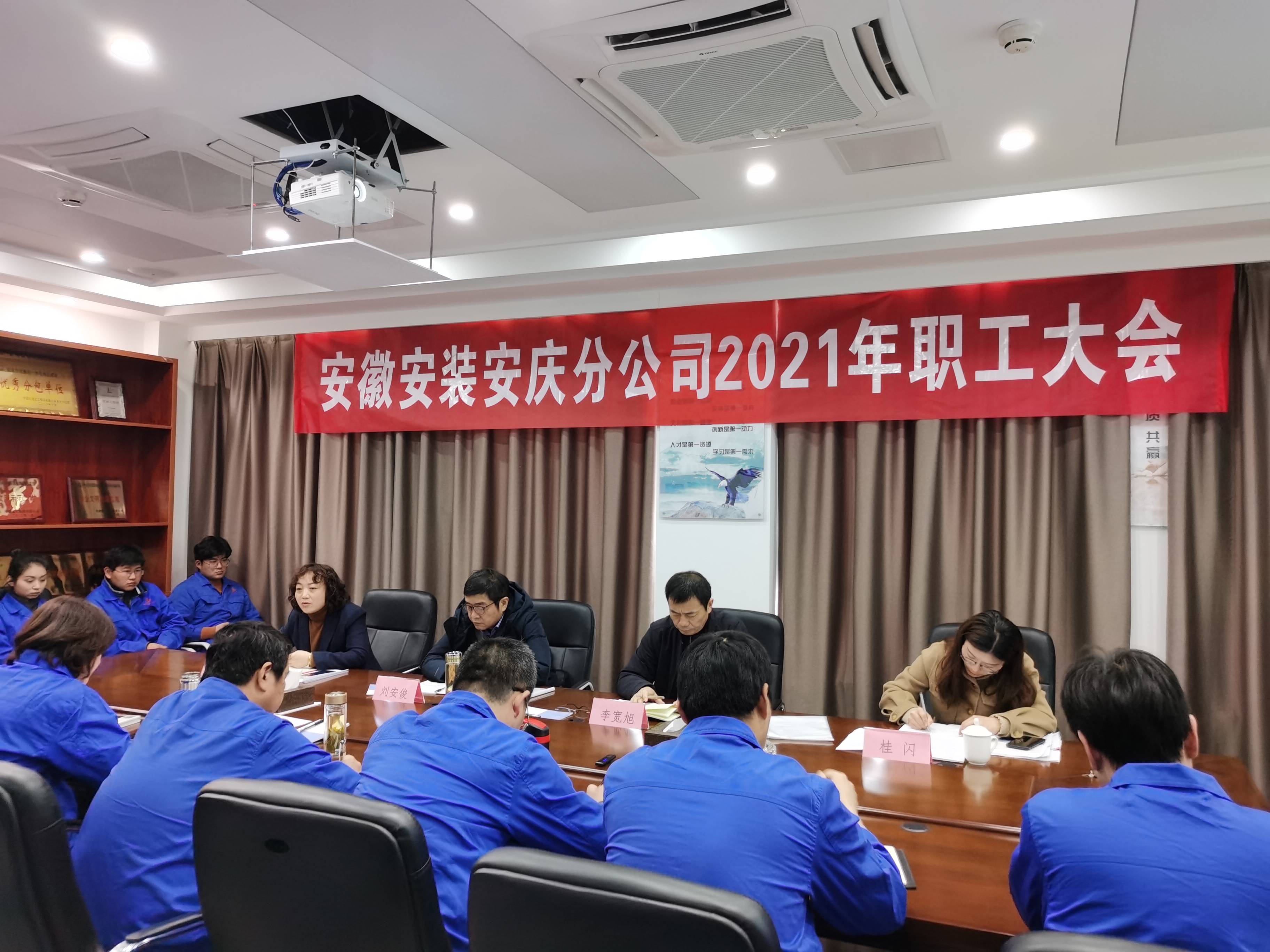 3月9日上午,安徽安裝公司安慶分公司召開2021年職工大會,公司副總經理、安慶分公司聯系點領導劉安俊,紀委書記、工會主席李寬旭應邀出席了大會,人力資源部經理王敏及黨委辦公室相關人員,分公司班子成員及機關、項目部員工參加會議,會議由安慶分公司黨支部書記劉紅艷主持。