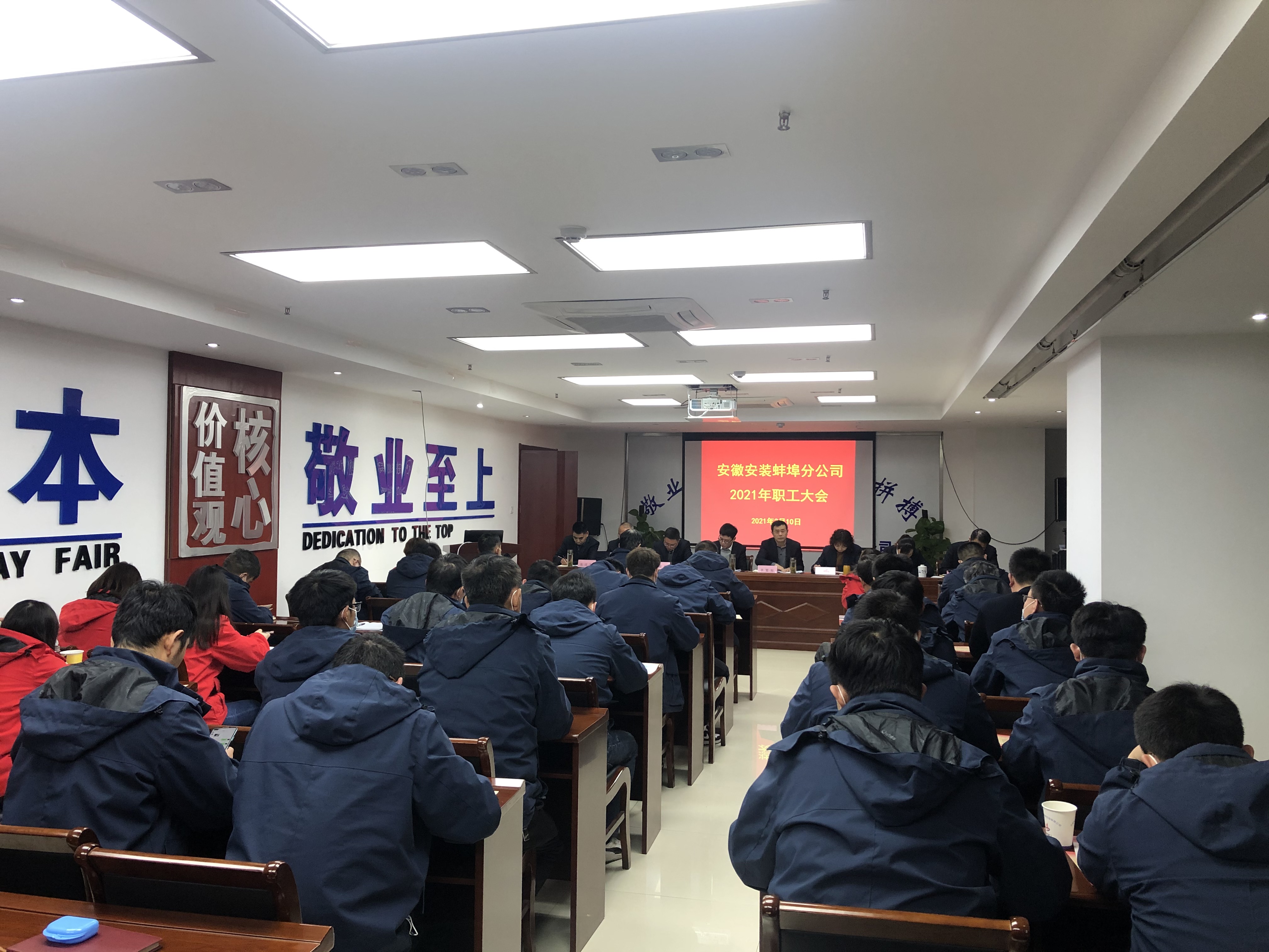 3月10日下午,蚌埠分公司召開2021年度職工大會,安徽安裝公司紀(jì)委書記、工會主席李寬旭,人力資源部經(jīng)理、機(jī)關(guān)第三黨支部書記王敏及黨委辦公室主管楊駿輝到會指導(dǎo)。分公司班子成員及全體員工參加會議,會議由分公司黨支部書記程茂麗主持。