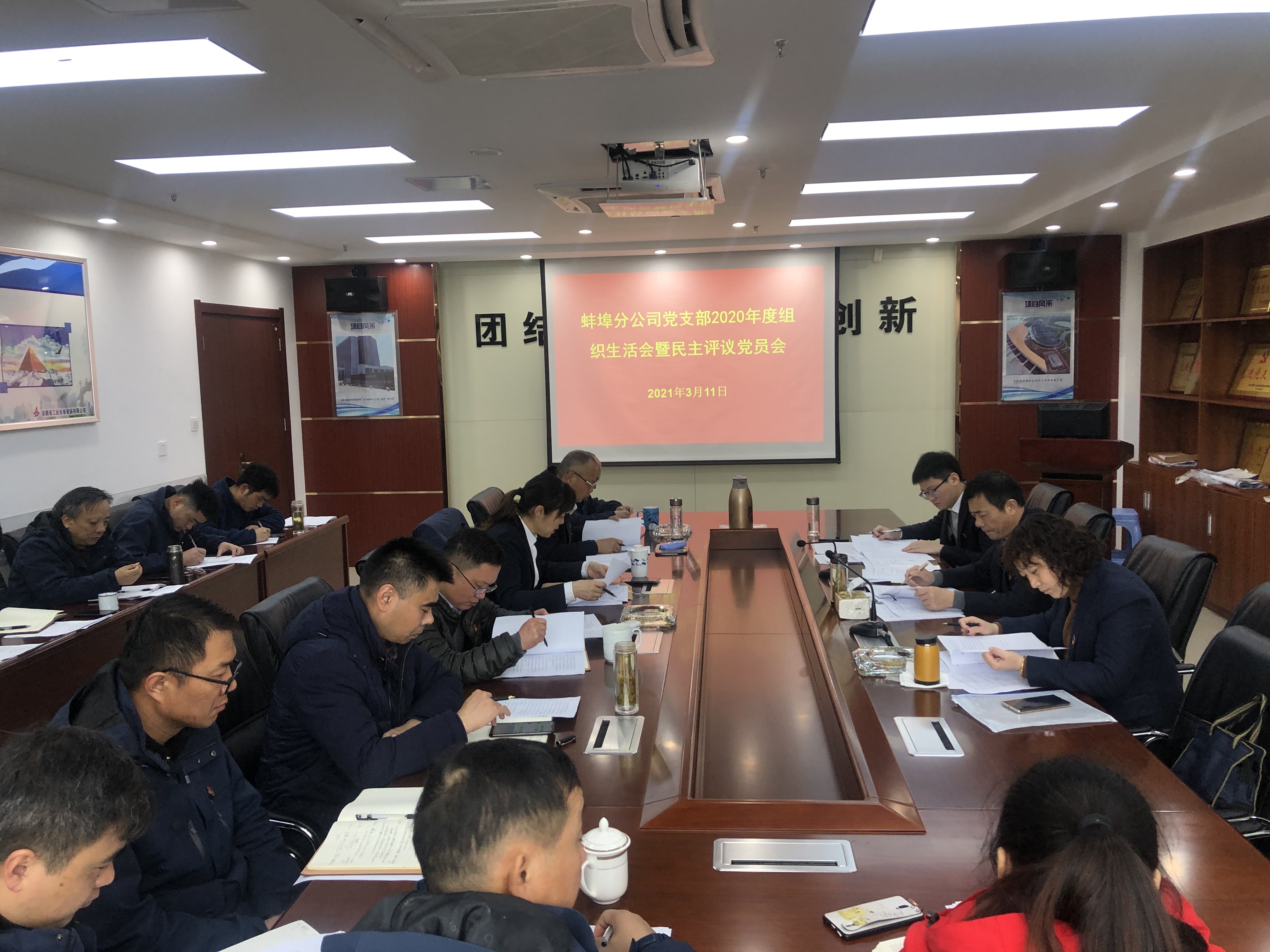 根據公司黨委工作部署,3月11日上午,蚌埠分公司黨支部召開2020年度專題組織生活會暨民主評議黨員大會。公司紀委書記、工會主席李寬旭,人力資源部經理、機關第三黨支部書記王敏,公司黨委辦公室主管楊駿輝同志到會指導。會議由黨支部書記程茂麗主持,分公司全體黨員參會。