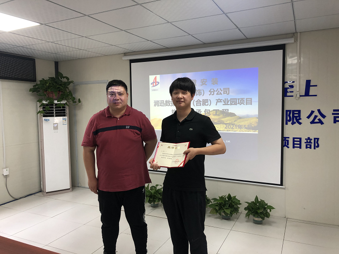 5月31日下午,房建(裝飾)分公司在潤迅數據中心合肥產業園項目部召開分公司5月份生產、安全、經營工作會,公司工程管理部經理龍海健、安全部副經理蔣秀正,分公司領導班子成員、部門負責人、項目經理、工程部全體人員參加了會議,會議由分公司黨支部書記王偉主持。