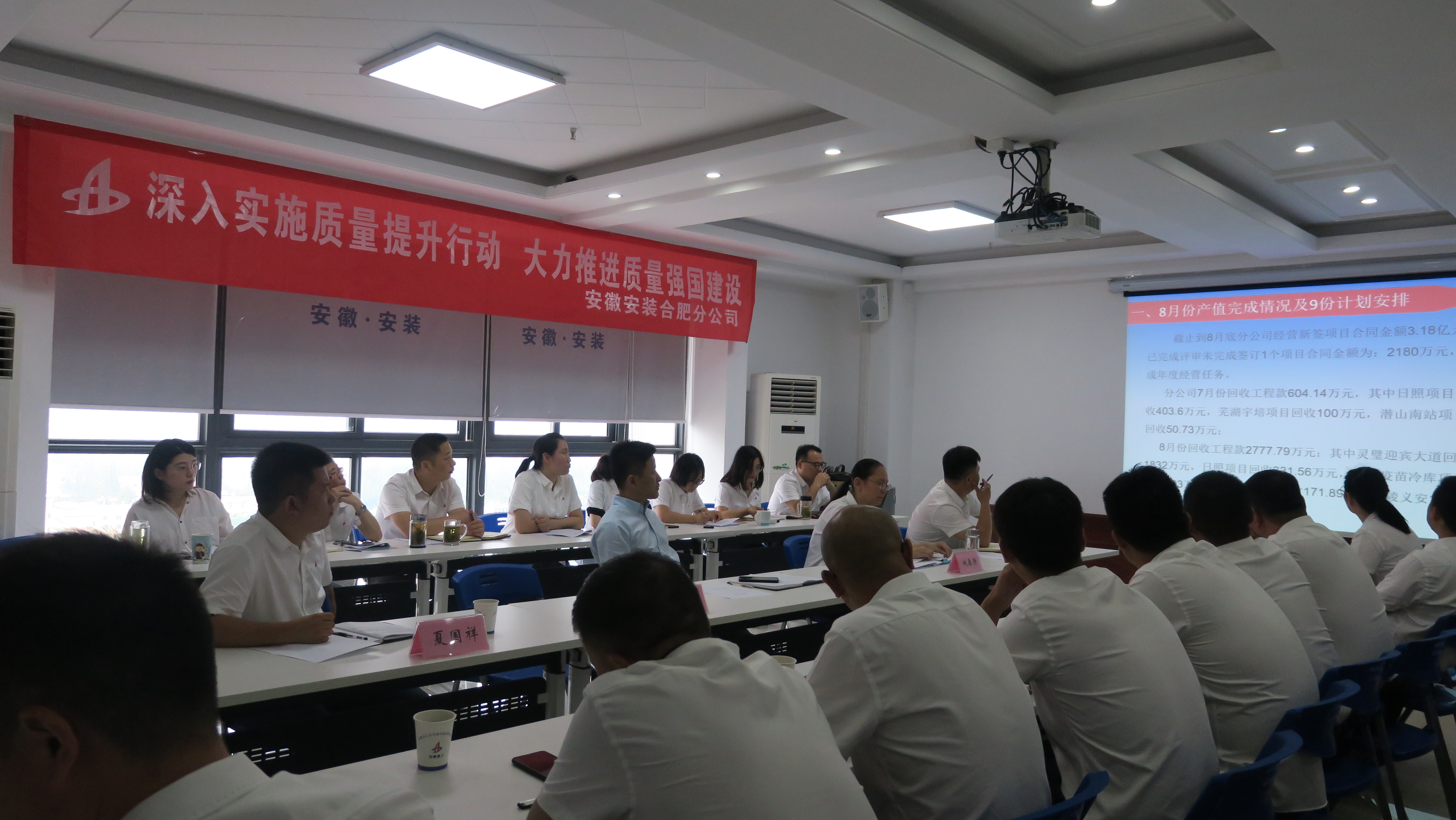 9月4日下午,合肥分公司召開了2021年9 月份生產、安全、經營暨“質量月”動員會議。分公司領導班子成員、所屬各項目經理、機關全體員工40余人參會,會議由工程管理部副主任馮慶捻主持。