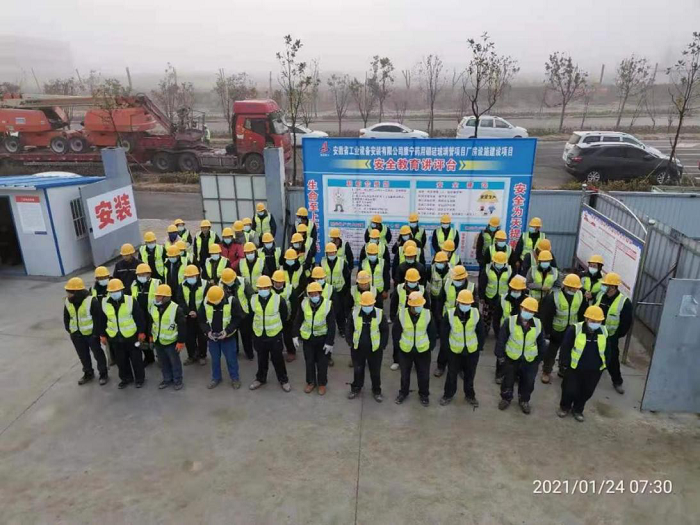 項(xiàng)目部人員進(jìn)場(chǎng)后明確分工,把人員分為三組,一組負(fù)責(zé)編制施工組織設(shè)計(jì),處理設(shè)計(jì)變更,另一組負(fù)責(zé)現(xiàn)場(chǎng)施工,第三組全力做好后勤保障工作。當(dāng)時(shí)的情況可以說是火燒眉毛,一方面康寧方要求確保節(jié)點(diǎn)工期,但現(xiàn)場(chǎng)卻存在邊設(shè)計(jì)邊施工邊修改情況,每天發(fā)出的工程聯(lián)系單就多達(dá)近二十份。安裝工程工序繁復(fù),現(xiàn)場(chǎng)又同時(shí)與土建、鋼結(jié)構(gòu)大面積交叉施工;另一方面項(xiàng)目部管理人員中有許多人都是首次參與外企項(xiàng)目施工,對(duì)外企的技術(shù)和管理要求不適應(yīng)。怎么辦?是臨陣退縮還是迎難而上?面對(duì)這種情況,分公司黨支部以黨史學(xué)習(xí)教育為契機(jī),開展黨員公開承諾踐諾、黨員示范崗活動(dòng),號(hào)召黨員發(fā)揮先鋒模范作用,工會(huì)相繼開展了“大干120天,確保完成施工任務(wù)”,“學(xué)黨史、保安康、 工期、沖千億,大干60天,確保完成目標(biāo)任務(wù)”勞動(dòng)競(jìng)賽活動(dòng),向全體參戰(zhàn)人員發(fā)出了競(jìng)賽倡議書,通過勞動(dòng)競(jìng)賽統(tǒng)一思想,鼓舞士氣,項(xiàng)目部人員吃、住、辦公在工地,加班加點(diǎn),早已成家常便飯。幾乎每一名管理人員都是白天看現(xiàn)場(chǎng),晚上參加項(xiàng)目現(xiàn)場(chǎng)推進(jìn)會(huì),細(xì)細(xì)梳理每一道工序、每一個(gè)施工節(jié)點(diǎn),制定詳細(xì)實(shí)施計(jì)劃,大家只有一個(gè)信念,一定要確保如期完工,展示安徽安裝良好的形象。