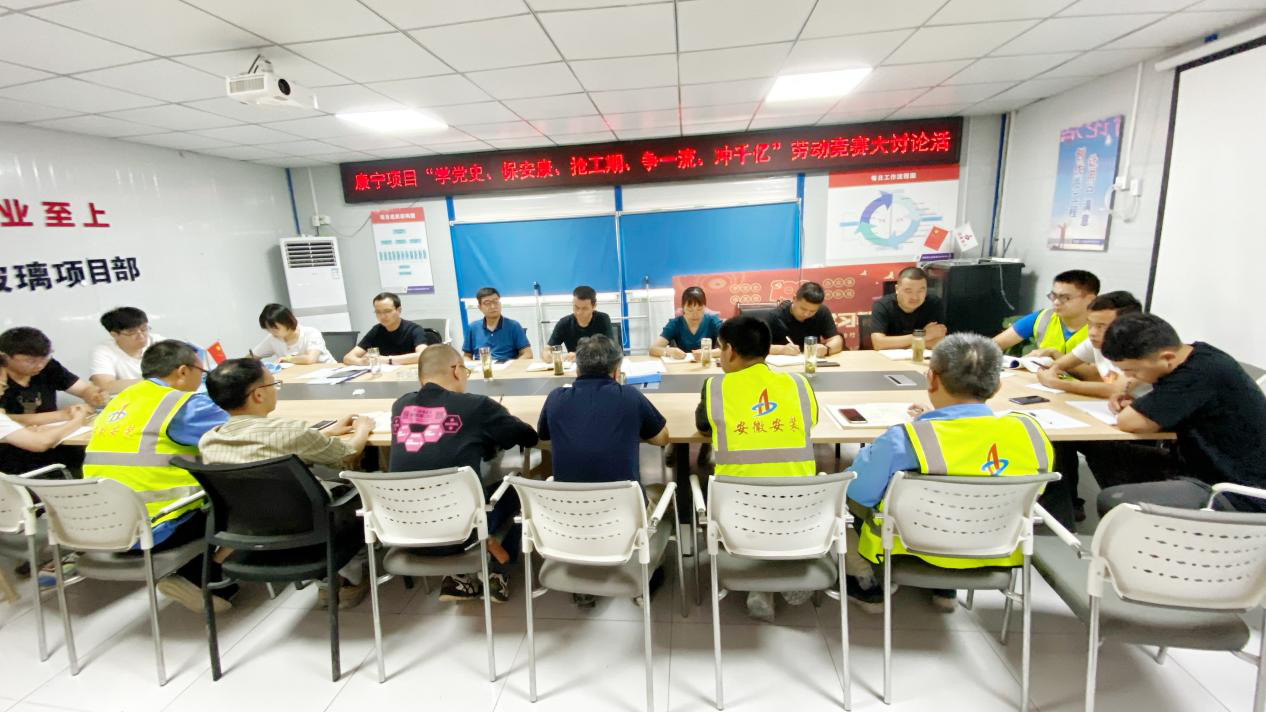 為貫徹落實(shí)集團(tuán)公司“學(xué)黨史、保安康、搶工期、爭(zhēng)一流、沖千億”主題勞動(dòng)競(jìng)賽活動(dòng)精神,6月29日上午,安徽安裝公司在蚌埠康寧項(xiàng)目部會(huì)議室開(kāi)展“學(xué)黨史、保安康、搶工期、爭(zhēng)一流、沖千億,大干60天,確保完成節(jié)點(diǎn)目標(biāo)”的勞動(dòng)競(jìng)賽大討論活動(dòng)。公司副總經(jīng)理劉安俊,公司紀(jì)委書(shū)記、工會(huì)主席李寬旭,公司工程管理部經(jīng)理龍海健,蚌埠分公司領(lǐng)導(dǎo)班子成員,康寧項(xiàng)目部人員等30人參加了會(huì)議,會(huì)議由李寬旭主持。