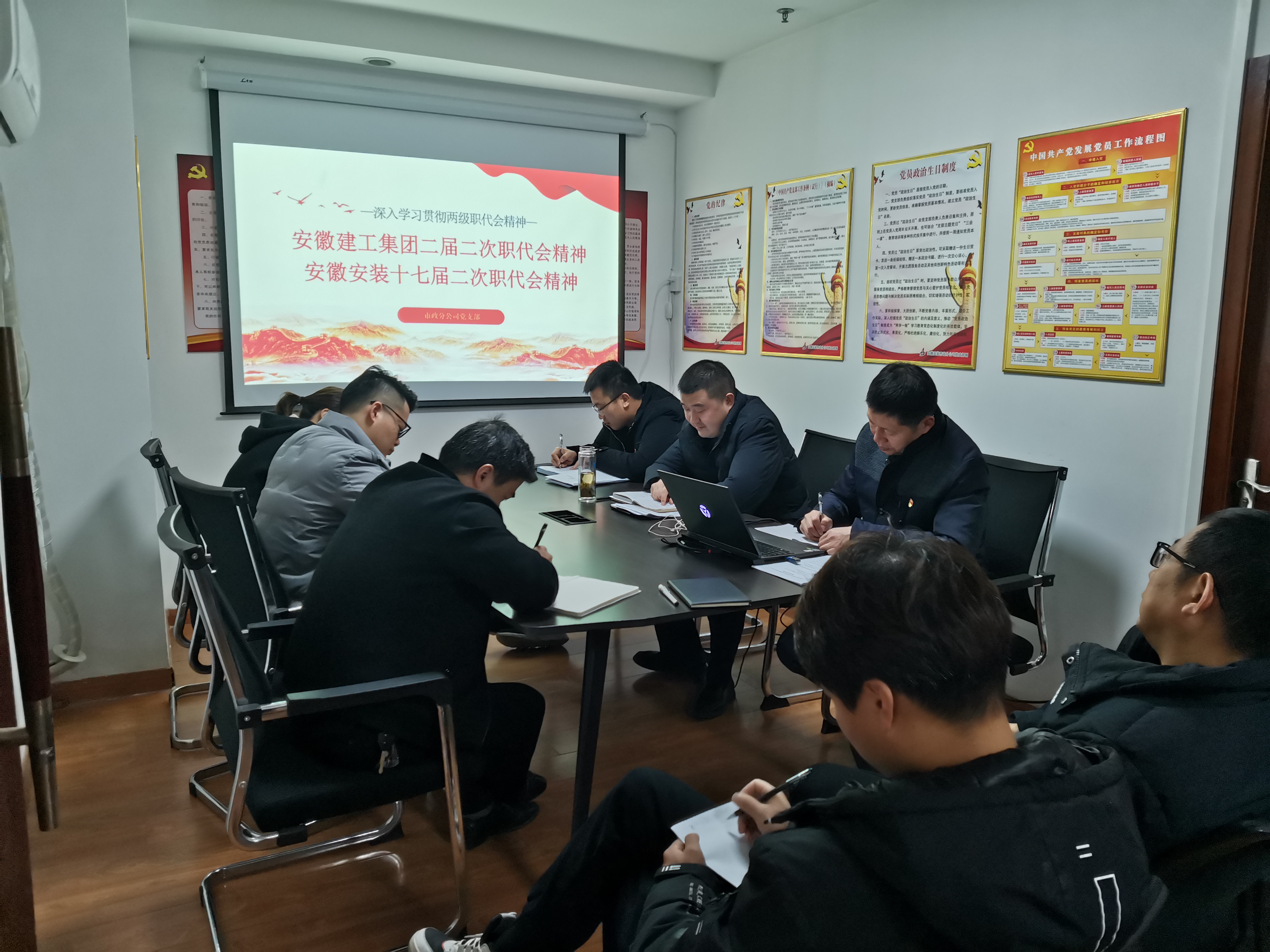 1月28日上午,市政分公司召開專題學習會,傳達學習集團二屆二次職代會暨2022年工作會議精神和公司第十七屆二次職代會精神,分公司全體員工參加了會議,會議由分公司黨支部書記胡迎東主持,