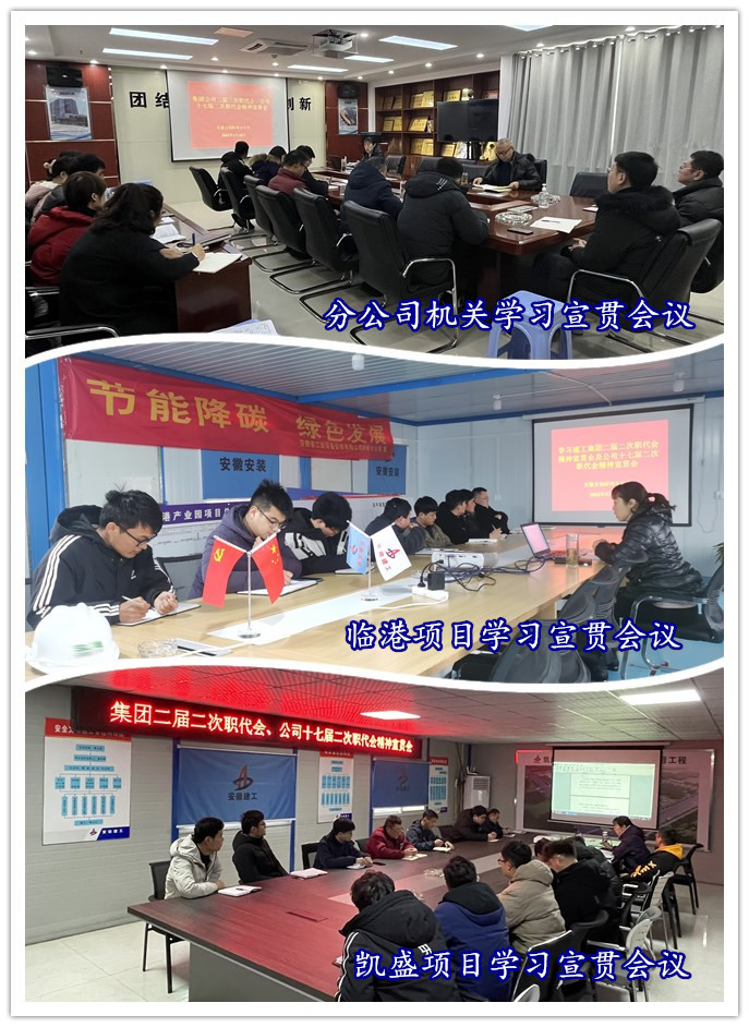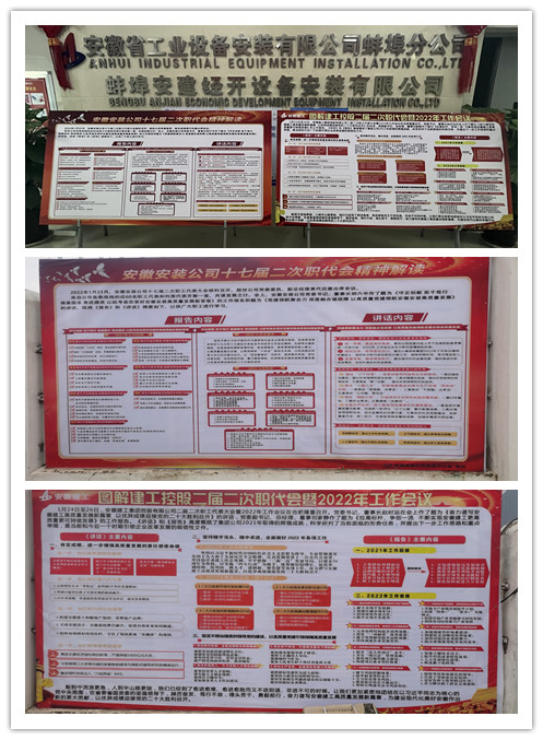 2月10日—11日,在分公司機關(guān)和各在建項目一線召開兩級職代會精神專題宣貫會。會議由分公司黨支部書記程茂麗主持。會上,程茂麗首先傳達了集團公司黨委書記、董事長趙時運在集團二屆二次職代會暨2022年度工作會議作的題為《奮力譜寫安徽建工高質(zhì)量發(fā)展新篇章 以優(yōu)異成績迎接黨的二十大勝利召開》的講話和集團黨委副書記、總經(jīng)理、董事劉家靜作的題為《拉高標桿、爭創(chuàng)一流 不斷實現(xiàn)安徽建工更高質(zhì)量更可持續(xù)發(fā)展》的工作報告;隨后又帶領(lǐng)大家深入解讀了公司黨委書記、董事長胡六中在公司十七屆二次職代會上所作的《守正創(chuàng)新 實干篤行 強基固本 競進提質(zhì) 以趕考姿態(tài)答好安徽安裝高質(zhì)量發(fā)展新答卷》的報告及《黨建領(lǐng)航聚合力 深度融合強保障 以高質(zhì)量黨建領(lǐng)航安徽安裝高質(zhì)量發(fā)展》的講話。