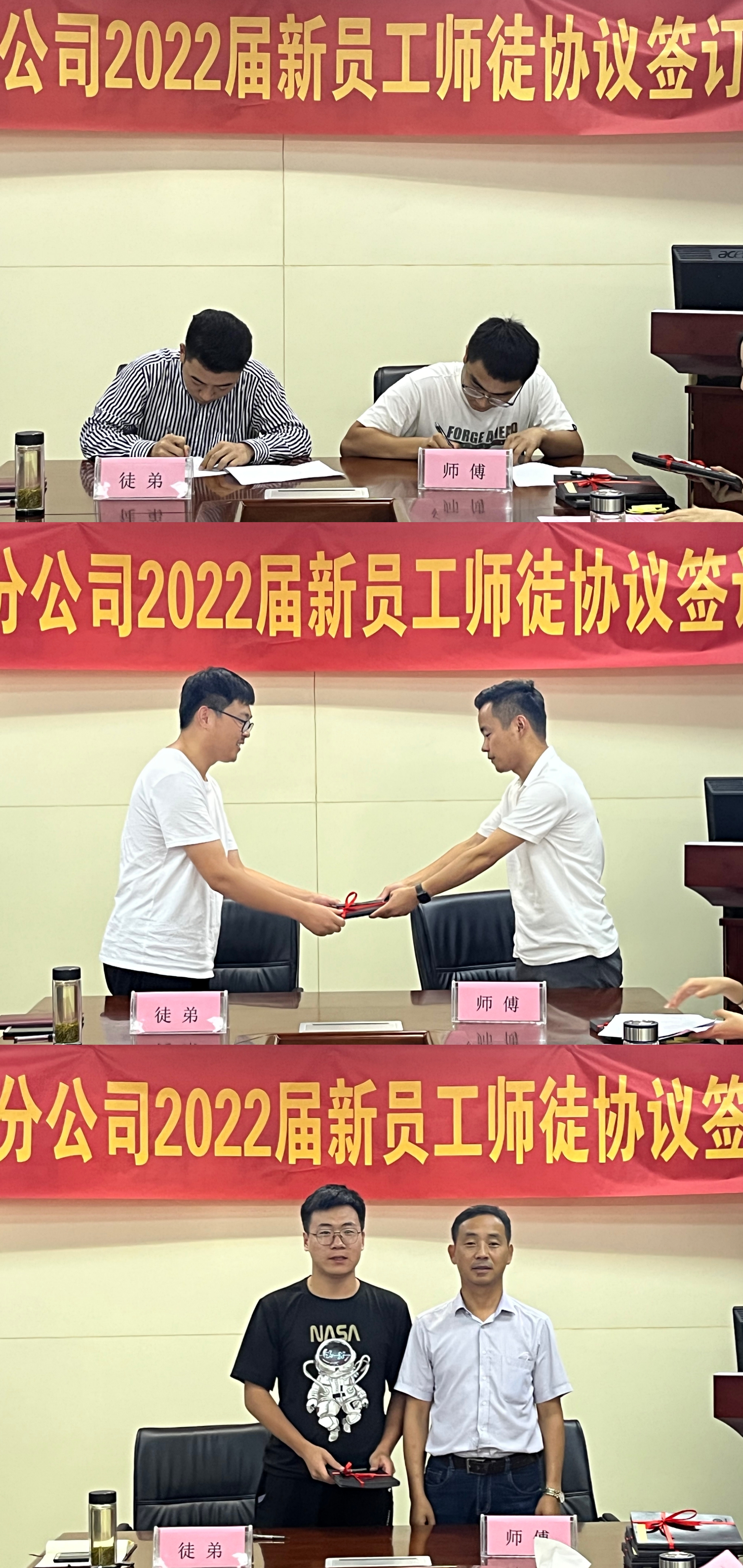 簽約儀式上,分公司黨支部書記程茂麗首先宣讀了分公司六對師徒結對人員名單。隨后,在與會人員的共同見證下,雙方簽訂師徒協議,徒弟們謙恭有禮地向師傅行拜師禮,師傅們則將精心準備的禮物贈送給徒弟,并合影留念。接著,師徒代表分別作表態發言。