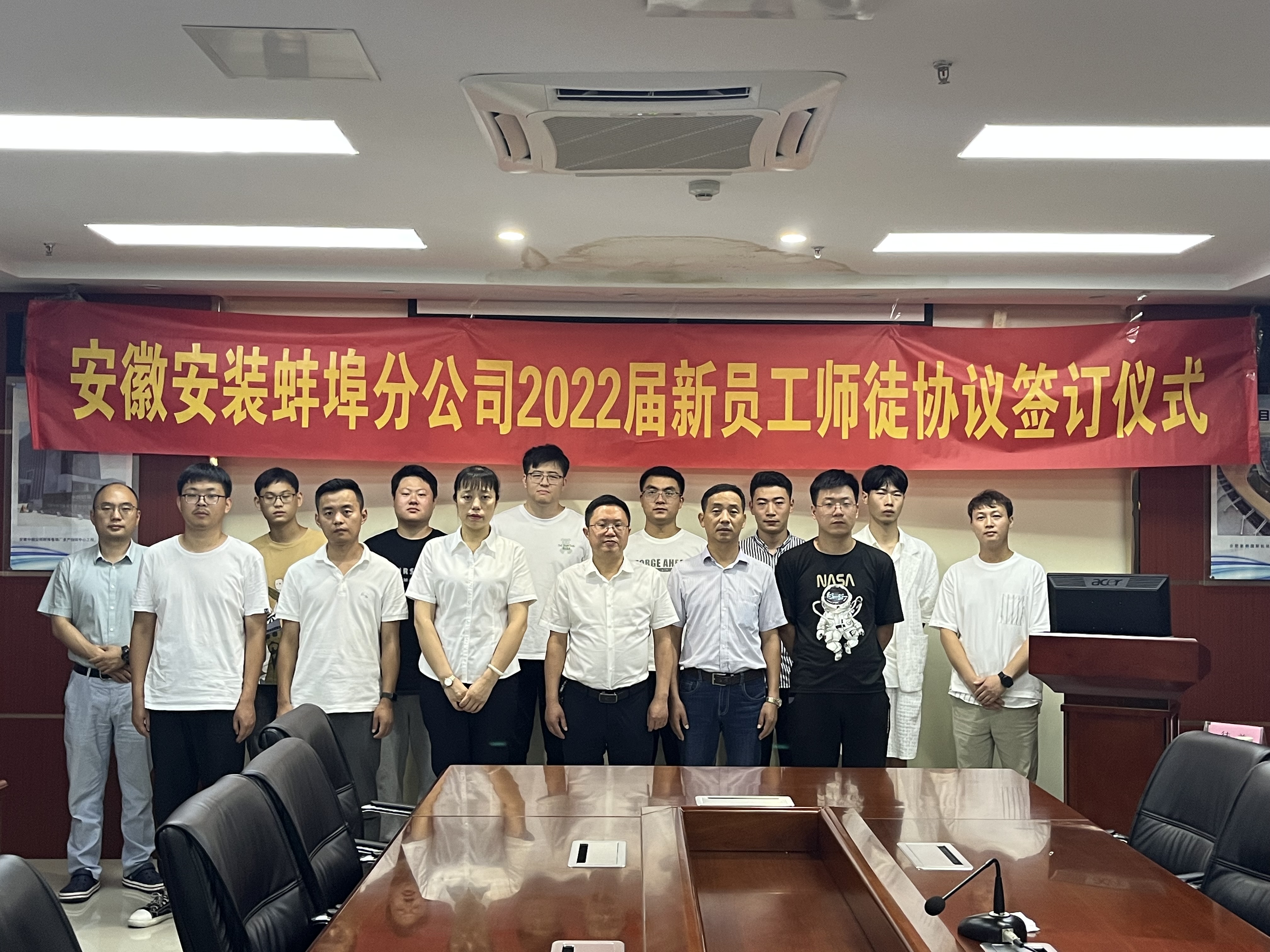 為使新員工盡快成長成才,加速人才培養,加強分公司人才梯隊建設。7月15日下午,蚌埠分公司黨支部舉行了“2022屆新員工師徒結對”簽訂儀式。分公司黨政主要領導、部門負責人、項目經理、六對結對師徒參加了此次會議。