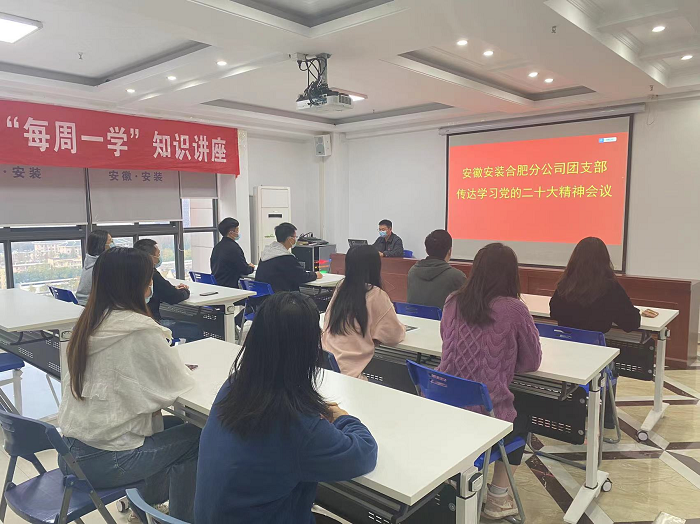 安徽安裝合肥分公司團支部組織團員青年召開會議,傳達學習黨的二十大精神,圍繞如何發揮共青團組織的政治功能、做好黨的理論“青年化”闡釋開展熱烈討論。