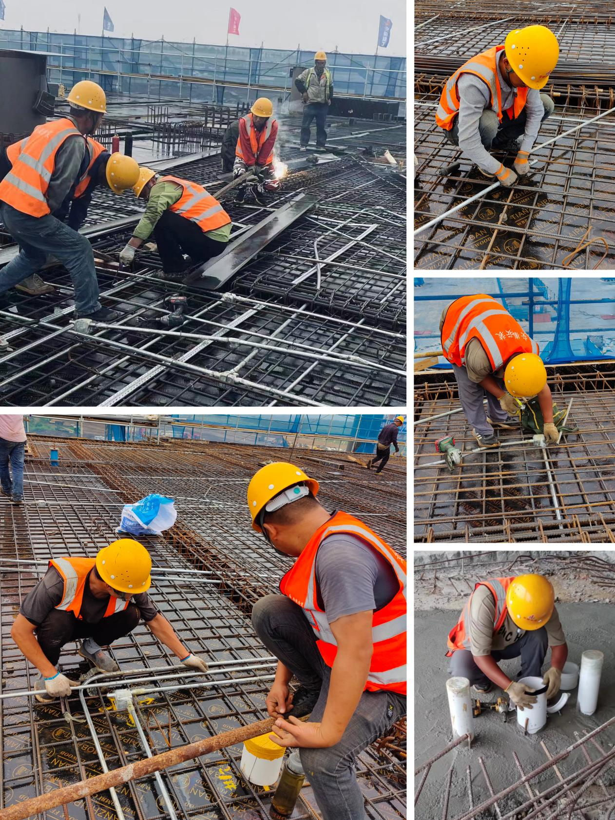 合肥新橋國際機場T2航站樓項目正在進行板面電管預(yù)埋、管口封堵和安裝