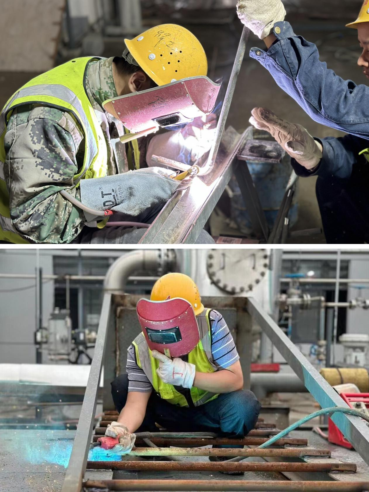 蕪湖普立思項目正在進行現(xiàn)場鋼平臺和蒸汽支管焊接