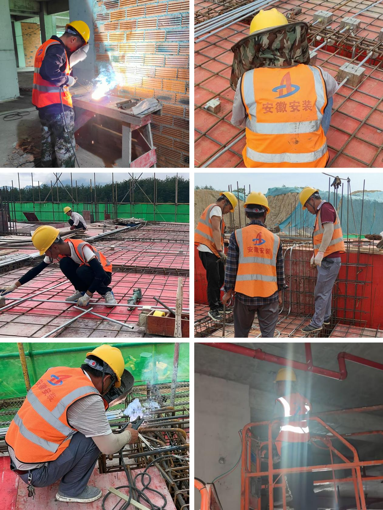 岳西中學(xué)項目現(xiàn)場正在進行埋地排水管道、消防水平管道安裝、樓層板面線管預(yù)埋、防雷焊接