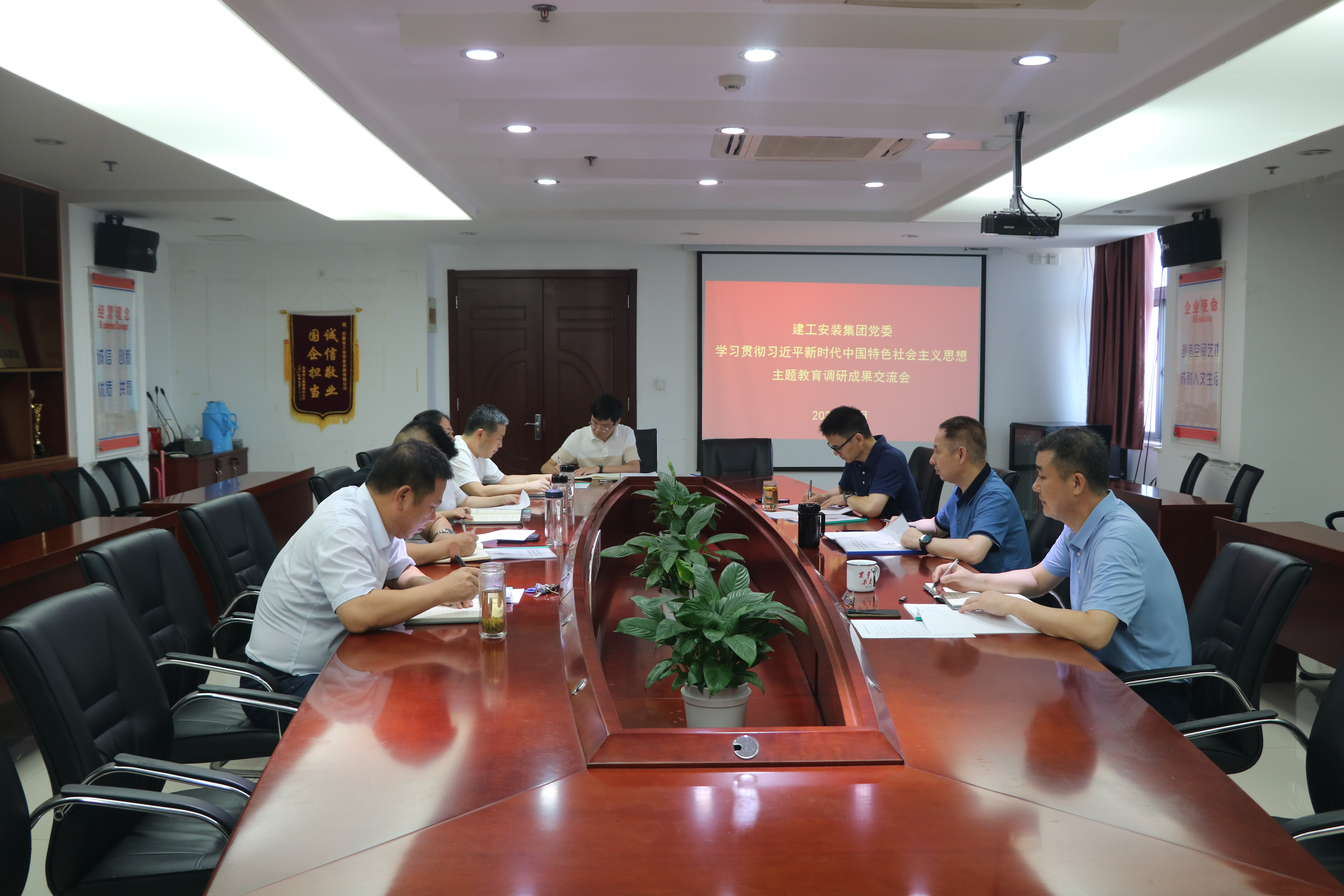 8月4日上午,建工安裝黨委召開學習貫徹習近平新時代中國特色社會主義思想主題教育調研成果交流會。公司黨委書記、董事長胡六中主持會議,公司領導班子成員、主題教育領導小組成員參會。