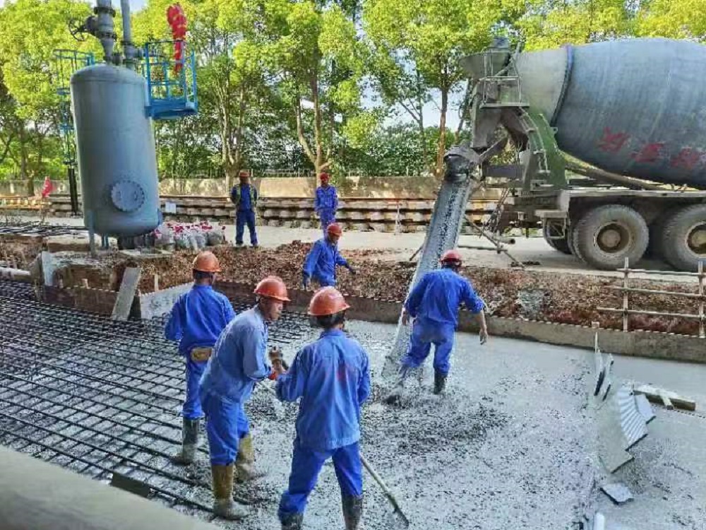 二季度黃金期,正是新增鐵路接卸純苯設施項目進行整體道床筏板混凝土澆筑的關鍵時刻,建工安裝新增鐵路接卸純苯設施項目一線員工舍棄假日休息,毅然堅守在各自的崗位上,對基礎施工絲毫不松懈,確保每一道工序都精準無誤。