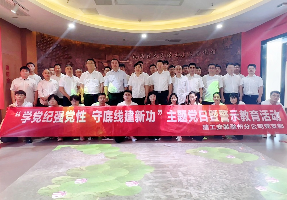 為扎實(shí)推進(jìn)黨紀(jì)學(xué)習(xí)教育走深走實(shí),進(jìn)一步增強(qiáng)分公司黨員干部黨紀(jì)觀念和廉潔意識,培育分公司“清廉文化”干事創(chuàng)業(yè)氛圍,5月16日下午,建工安裝滁州分公司黨支部組織分公司領(lǐng)導(dǎo)班子成員、機(jī)關(guān)部門負(fù)責(zé)人、項(xiàng)目經(jīng)理、全體黨員和團(tuán)員青年共40余人,赴瑤海區(qū)人民法院廉政文化館開展“學(xué)黨紀(jì)強(qiáng)黨性、守底線建新功”主題黨日暨警示教育活動(dòng)。