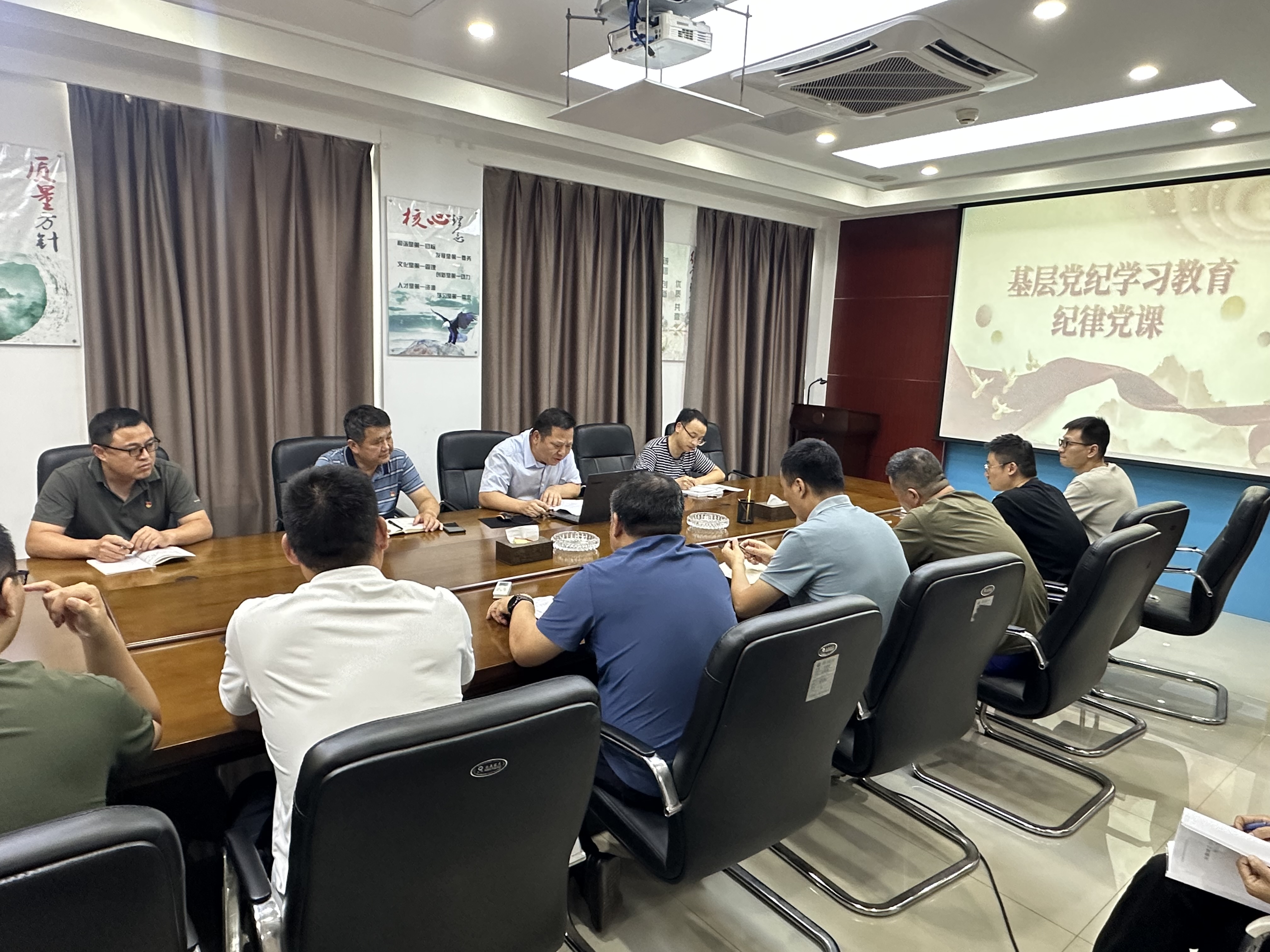 7月17日,公司黨委委員、副總經理董雙武前往安慶分公司講授紀律黨課。分公司領導班子成員、全體黨員、部門負責人和項目經理參加。
