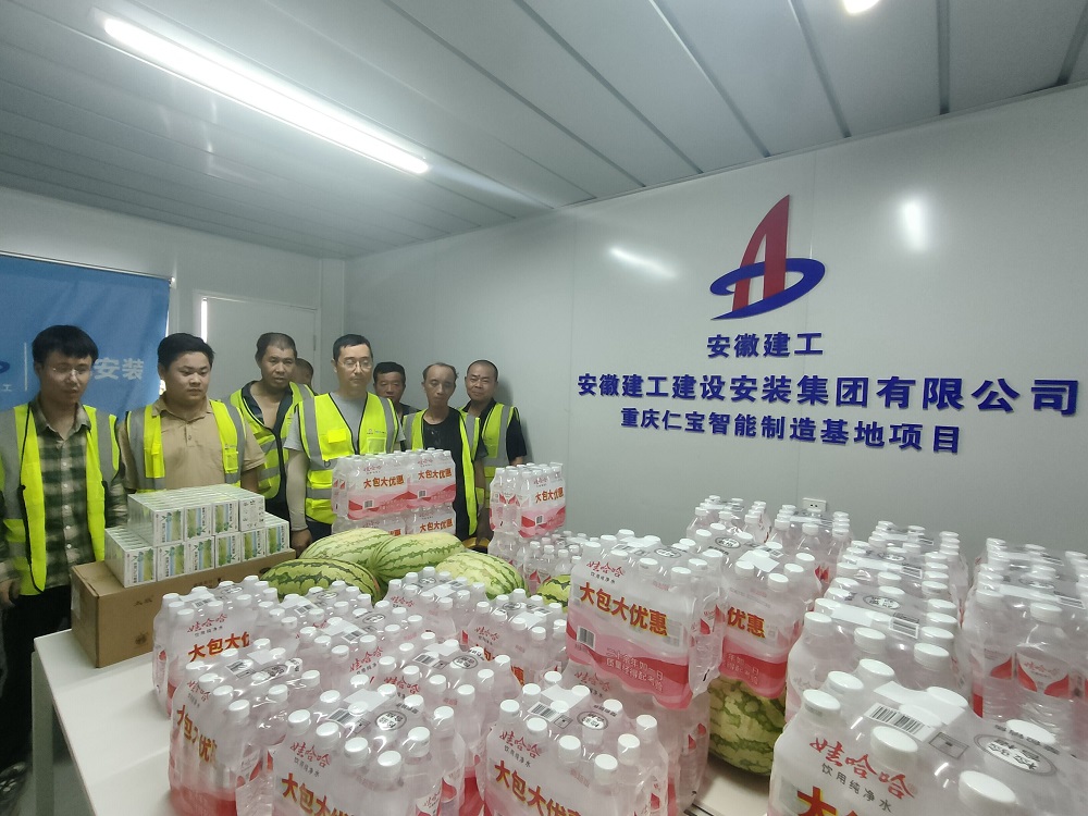 盛夏已至,驕陽(yáng)似火,建工安裝合肥分公司省內(nèi)外各項(xiàng)目現(xiàn)場(chǎng)掀起“沖刺三季度”大干熱潮。在合理組織施工的同時(shí),分公司多措并舉,通過(guò)聯(lián)合屬地項(xiàng)目部開展送清涼等慰問(wèn)活動(dòng),為建設(shè)者安全健康提供保障。
