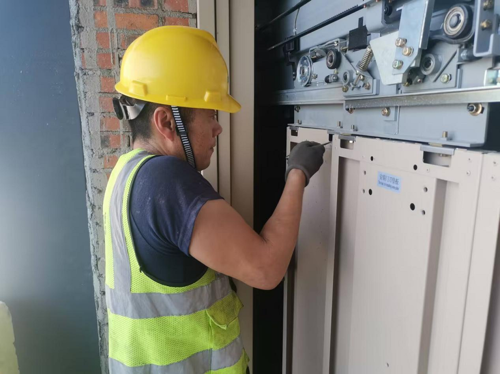 蚌埠傳感谷(寧波蚌埠微電子產業園一期)項目施工人員正在安裝電梯轎廂門