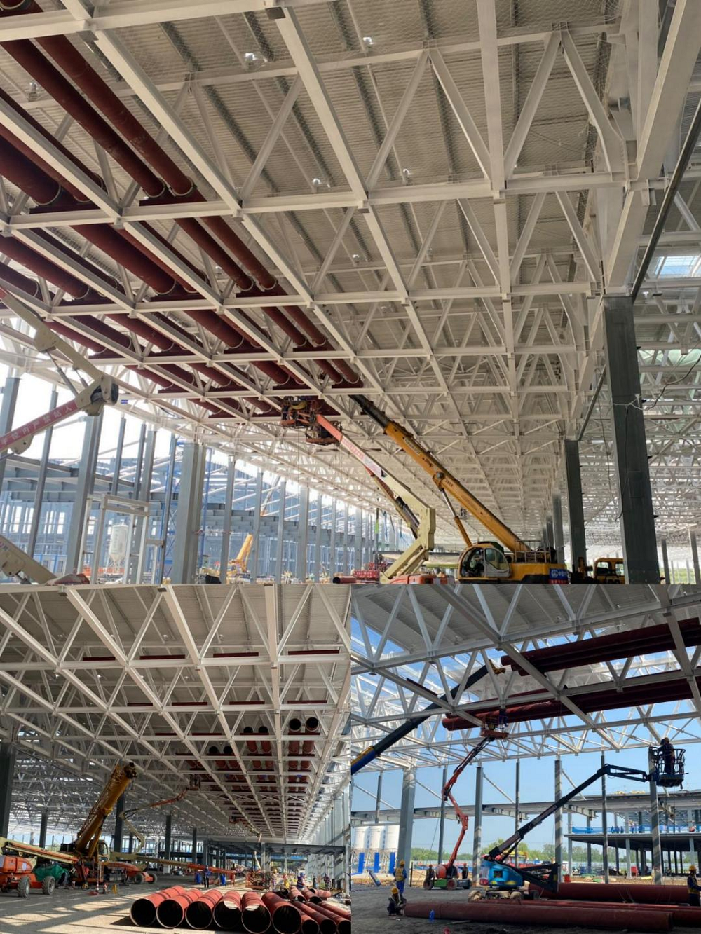 該項目工期緊、任務重,項目部開足馬力搶抓節(jié)點,充分合理調配人、材、機及資金等資源。為搶抓晴好天氣,錯峰高溫時段,管理人員靠前指揮,作業(yè)人員并聯(lián)推進、多點開花,加班加點、挑燈夜戰(zhàn)。在確保安全質量的前提下,優(yōu)化施工方案,緊跟鋼結構及土建單位的施工進度“見縫插針”,全力推進本項目的建設進度。
