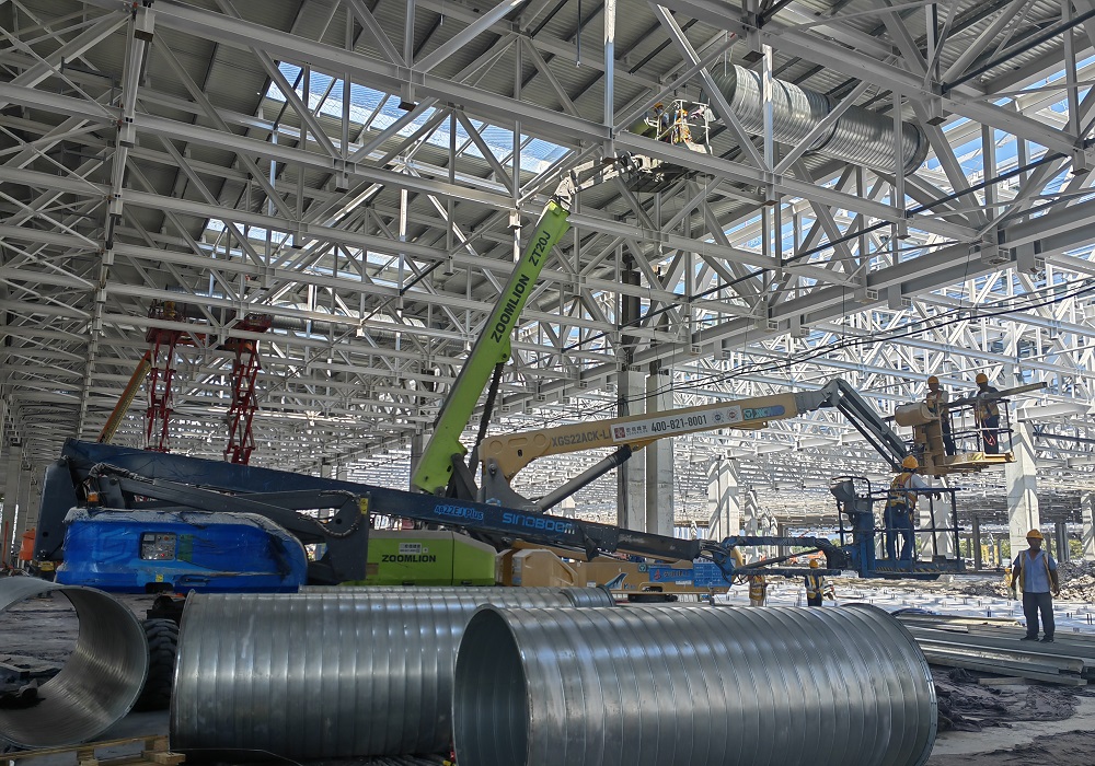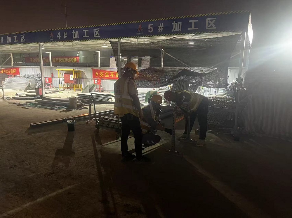 項目部全體管理人員緊抓施工節(jié)點,緊跟土建、鋼結(jié)構(gòu)單位施工進(jìn)度,全力統(tǒng)籌人、材、機(jī)合理高效入場,根據(jù)現(xiàn)場施工情況逐步優(yōu)化各專業(yè)施工方案,全力推進(jìn)施工進(jìn)度。目前,車間一整體防雷接地已完成60%,QA辦公樓預(yù)埋已完成90%,隨著土建單位工作面的交接,車間一5區(qū)、6區(qū)正在進(jìn)行成品支架、虹吸雨水管道、排水管、通風(fēng)管道等施工作業(yè)。