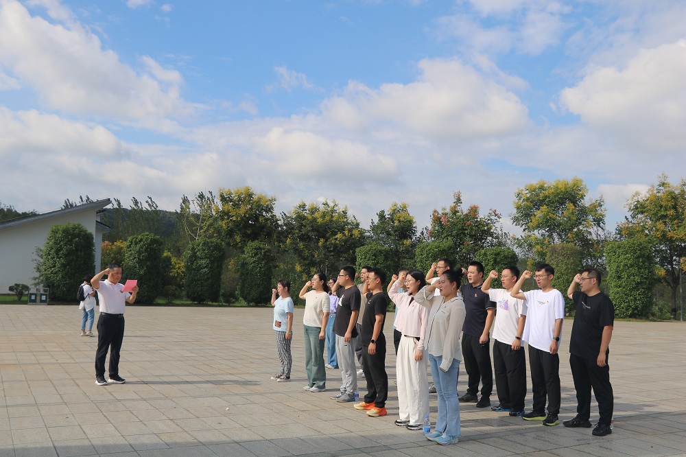 鏡園革命烈士紀念碑在陽光的照耀下莊嚴肅穆,黨員們懷著崇敬的心情,整齊列隊于紀念碑前,表達對先烈們的深切緬懷和無限哀思。在這片承載著歷史記憶的土地上,大家仿佛看到了革命先烈們?yōu)榱藝业莫毩ⅰ⒚褡宓慕夥牛幌侇^顱、灑熱血,用生命譜寫的壯麗篇章。全體黨員進行了集體宣誓,重溫入黨誓詞。