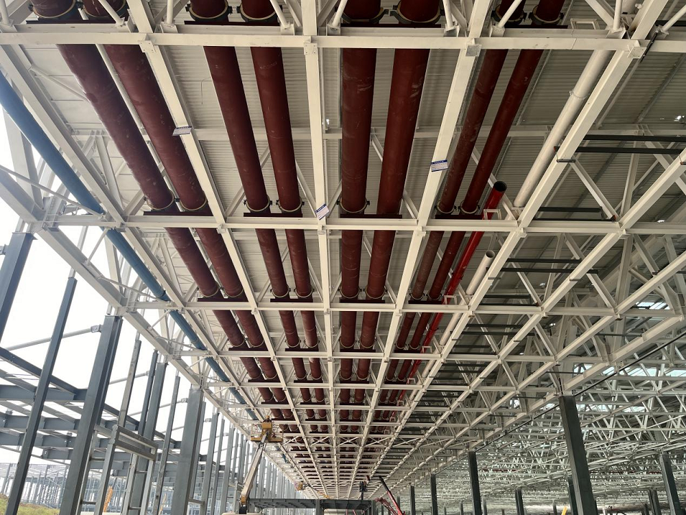 “優(yōu)方案”,項(xiàng)目部根據(jù)現(xiàn)場(chǎng)實(shí)際情況提前優(yōu)化吊裝施工方案,加快冷凍水管道安裝速度;并根據(jù)現(xiàn)場(chǎng)吊裝孔洞,轉(zhuǎn)變思路,定制8米螺旋焊管,大大加快了吊裝施工進(jìn)度。