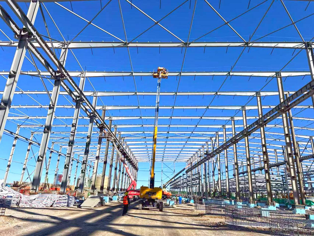 吊車的“長(zhǎng)臂”在空中伸展、曲臂車在鋼架間頻繁升降、工程車在場(chǎng)地上來(lái)回穿梭、工人們忙碌的身影隨處可見,敲擊聲此起彼伏……針對(duì)當(dāng)前重點(diǎn)建設(shè)任務(wù),項(xiàng)目部精細(xì)部署,組織施工力量、細(xì)化節(jié)點(diǎn)安排、調(diào)配人機(jī)資源,鼓足干勁、狠抓安全、緊扣進(jìn)度、全員發(fā)力,克服高海拔的特殊施工環(huán)境和偏遠(yuǎn)地區(qū)的資源保障困難,項(xiàng)目部提出了“奮戰(zhàn)兩月 決勝年末”的戰(zhàn)斗口號(hào),以“拼”的姿態(tài),“搶”的速度,全力沖刺12月底確保完成廠房封閉目標(biāo)節(jié)點(diǎn)。