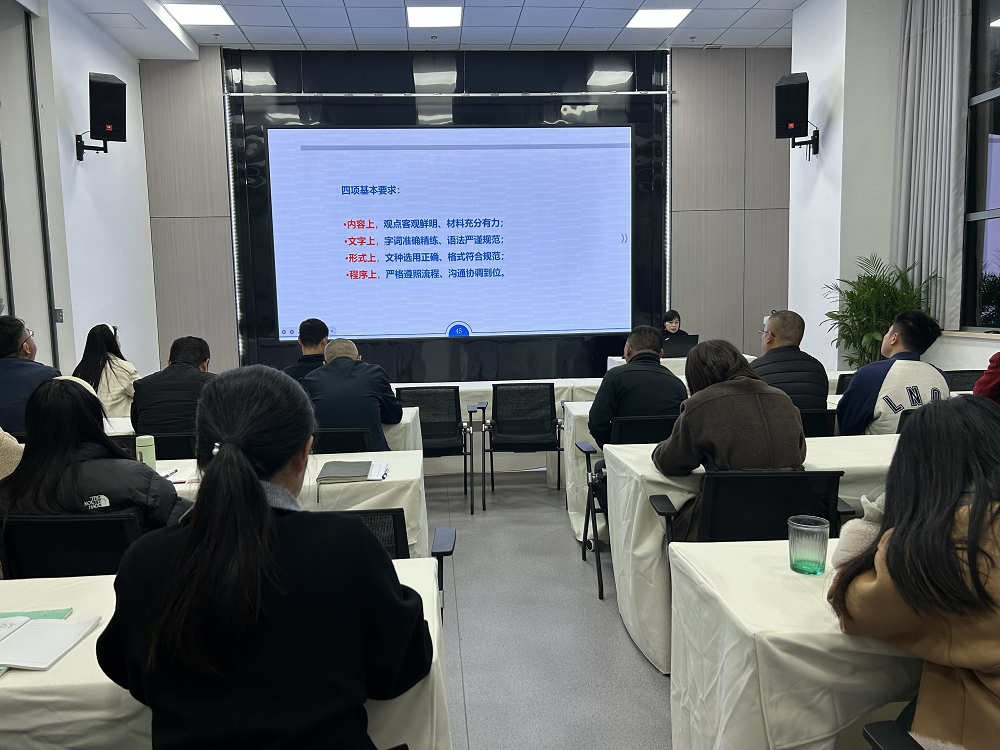黃俊筠圍繞“日常辦公制度、常見公文寫作要點、商務禮儀”等方面內容,重點解讀了業務接待、差旅費、跟進督辦等日常辦公制度。結合自身工作體會,黃俊筠用豐富的課件內容,由淺入深地講解了常用公文的寫作技巧和接待工作的基本禮儀,并以實際案例分析工作中容易出現的問題和疏漏的細節,提出改進的方法。