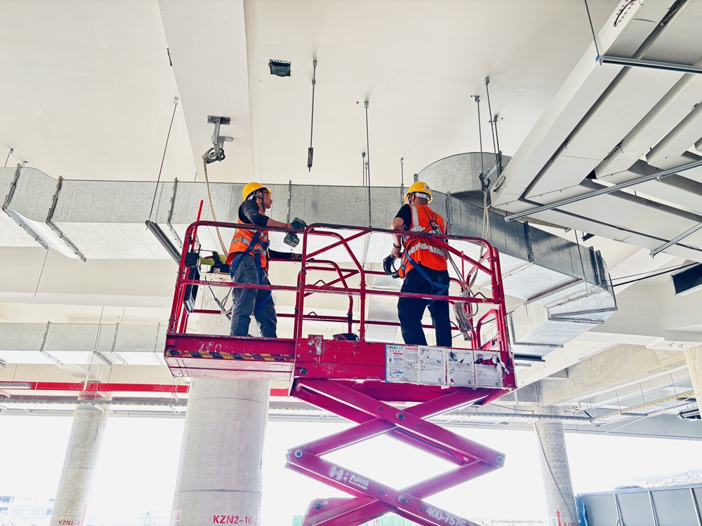航站樓空間結(jié)構(gòu)復(fù)雜,需多專業(yè)立體交叉作業(yè),項(xiàng)目部科學(xué)優(yōu)化施工組織,打出項(xiàng)目管理“組合拳”。全面推行周計(jì)劃進(jìn)度管控機(jī)制,將龐大建設(shè)任務(wù)分解細(xì)化為周目標(biāo),確保節(jié)點(diǎn)任務(wù)高效推進(jìn);深度運(yùn)用BIM技術(shù)開展碰撞檢查,實(shí)現(xiàn)風(fēng)管、水管、橋架等管線精準(zhǔn)排布;關(guān)鍵區(qū)域?qū)嵤?4小時(shí)輪班作業(yè),人停機(jī)不停與時(shí)間賽跑。一系列舉措成效顯著,截至目前,機(jī)電主管線安裝已完成超過30%,南北指廊S2、S3區(qū)與N2、N3區(qū)的空調(diào)機(jī)房、熱力交換站設(shè)備已就位,機(jī)電主管線正全力推進(jìn)安裝,為后續(xù)設(shè)備安裝調(diào)試贏得了寶貴時(shí)間。